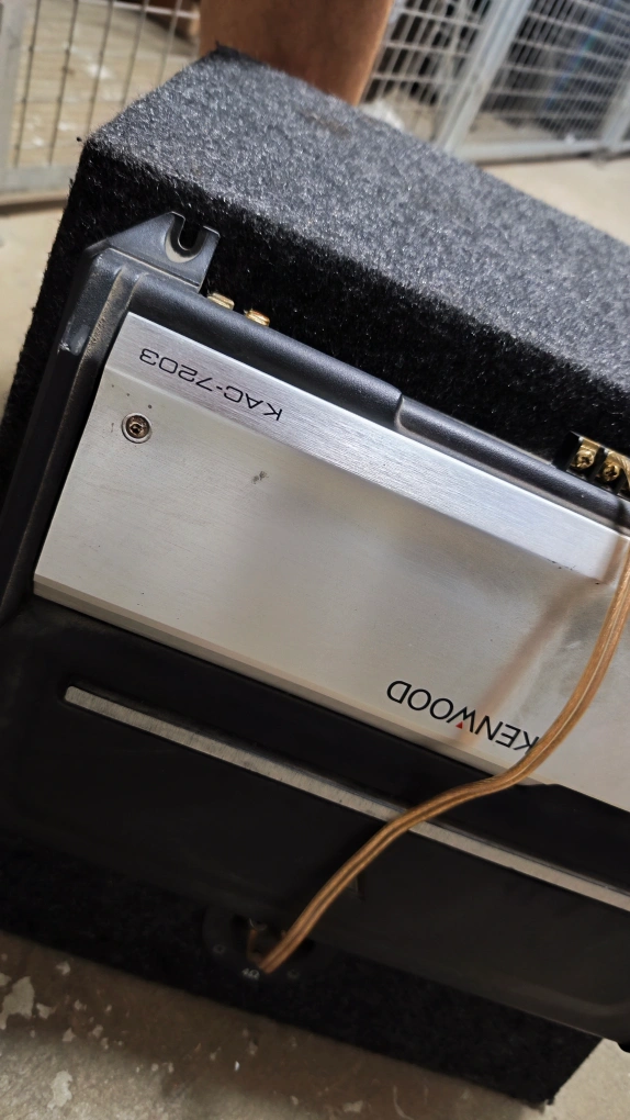 Selling a Kenwood KAC-7203 Stereo/Bridgeable Power Amplifier paired with an MTX subwoofer in an enclosure. It's in used condition, but ready to boost your car audio system!
