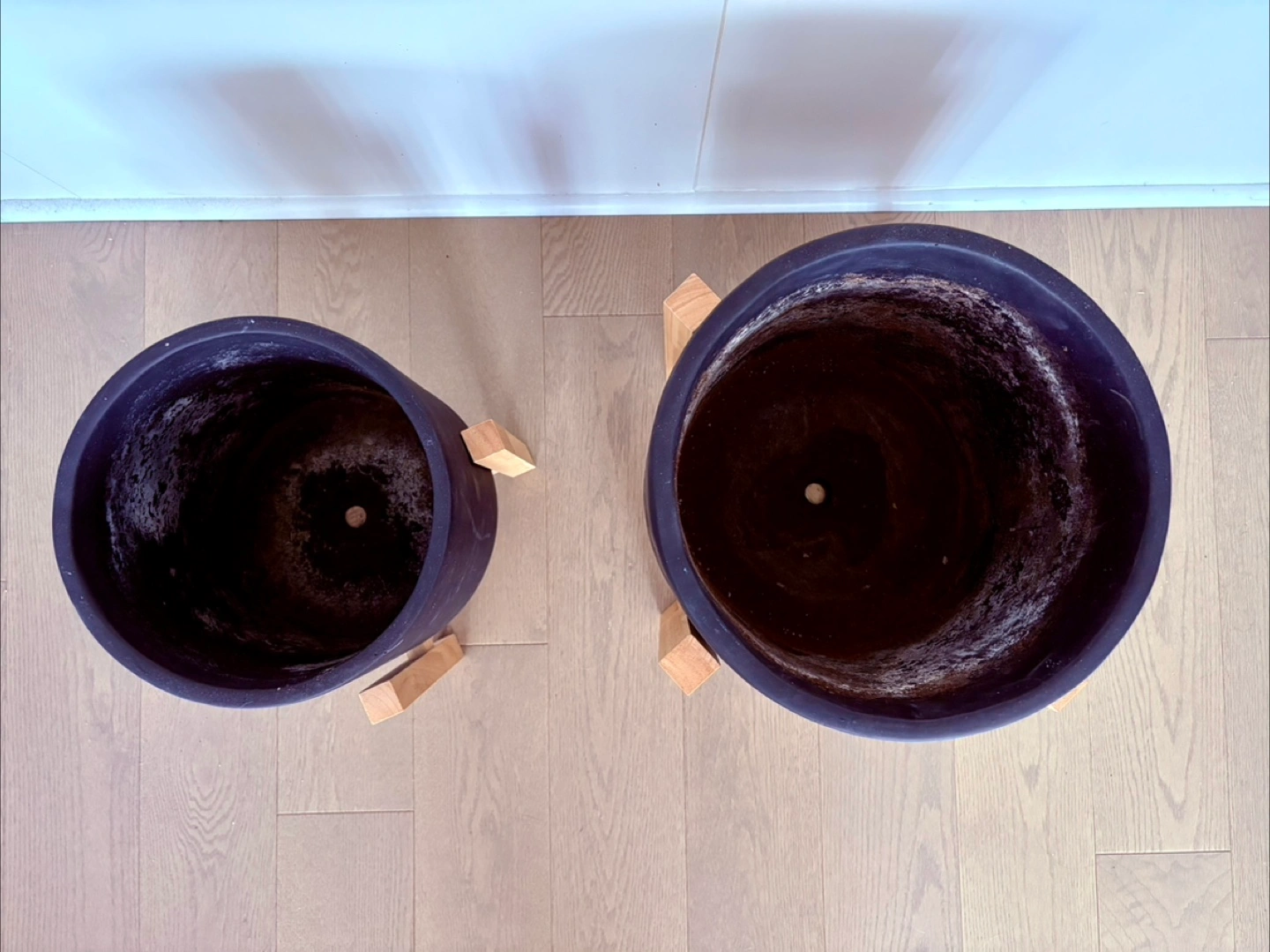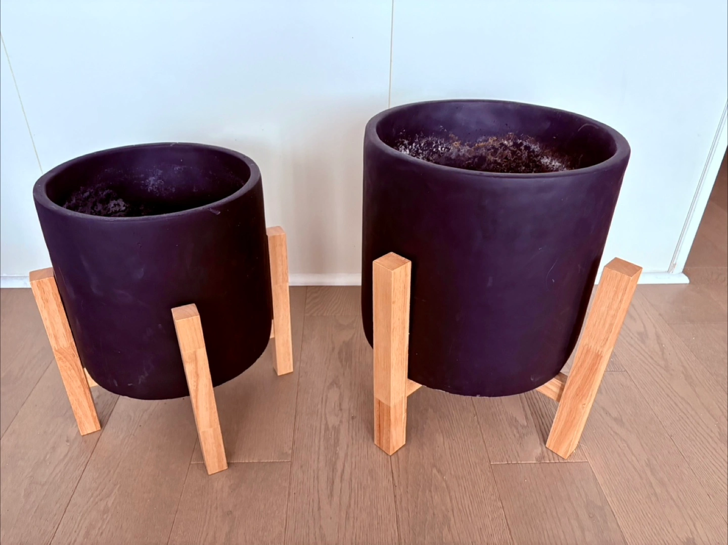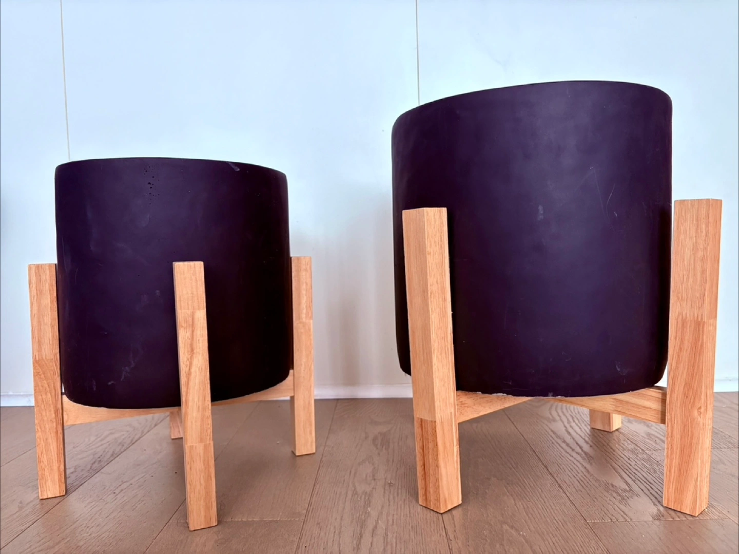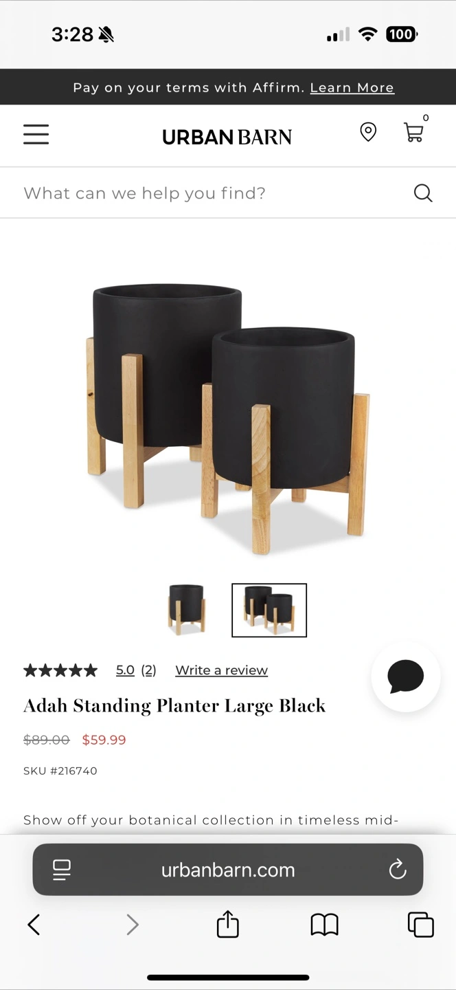 Selling a set of Urban Barn Adah standing planters in black. They include a large and small planter. The original price for the large was $89 and the small was $59. Asking $40 for both together. They're in good condition and ready for your favourite plants!