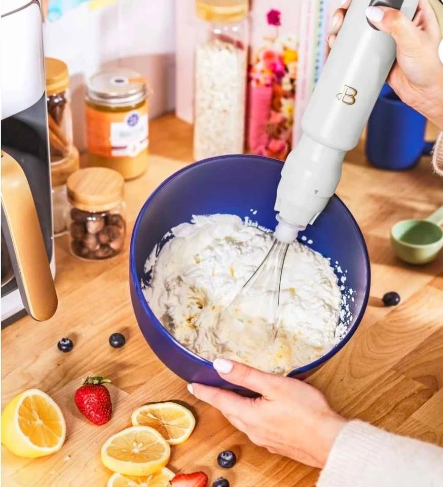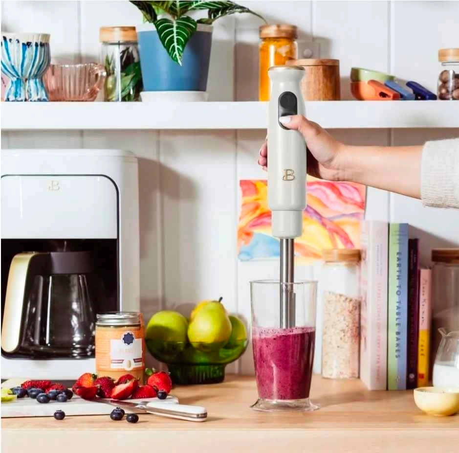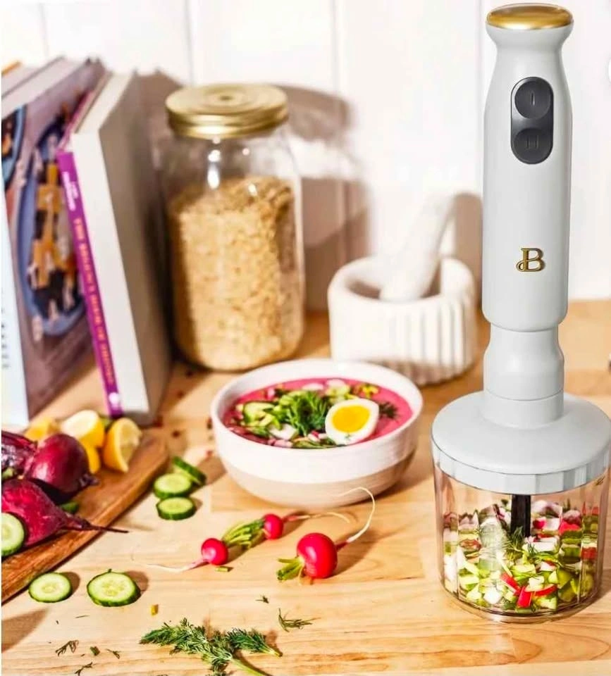 Powerful blending with a 400-watt DC motor, offering two speed settings (Low and High). Includes a 2-cup chopper, stainless steel whisk attachment, and a 24 oz measuring cup. Features an 8-inch stainless steel blending shaft and a soft matte premium coating. Designed with an ergonomic and lightweight body for comfortable handling. The detachable blending shaft locks easily and is dishwasher-safe for convenient cleaning. Includes an extra-long 5-foot cord.