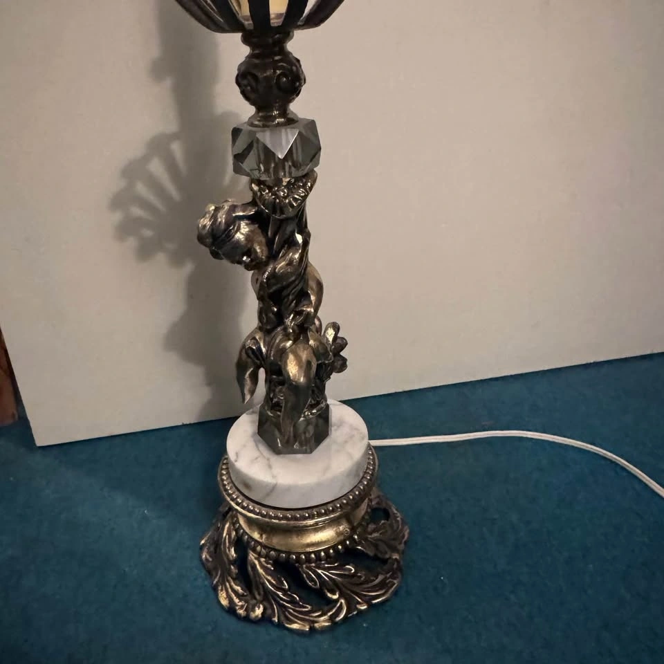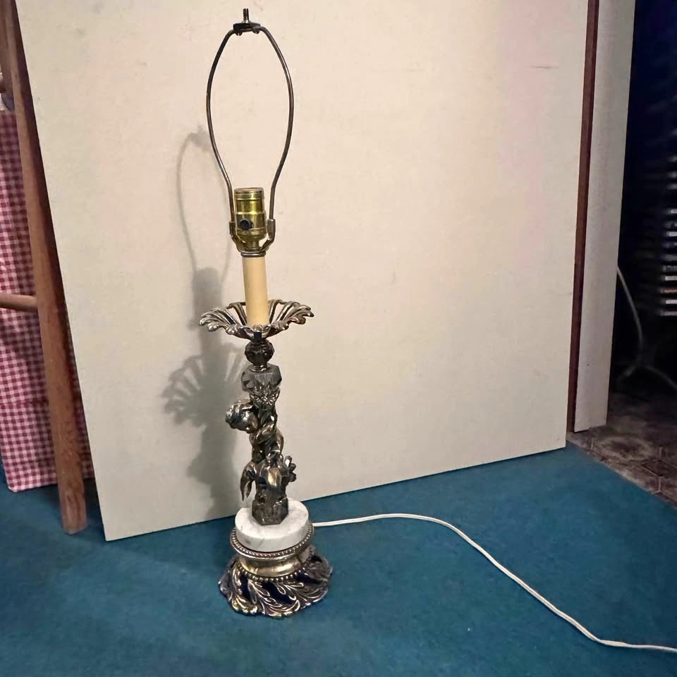 This is a vintage Hollywood Regency style table lamp featuring a cherub (putti) motif on a marble base. Missing its shade, easily replaced. But is a lovely little bit of MCM baroque revival. Pick up North side Edmonton. $50 obo