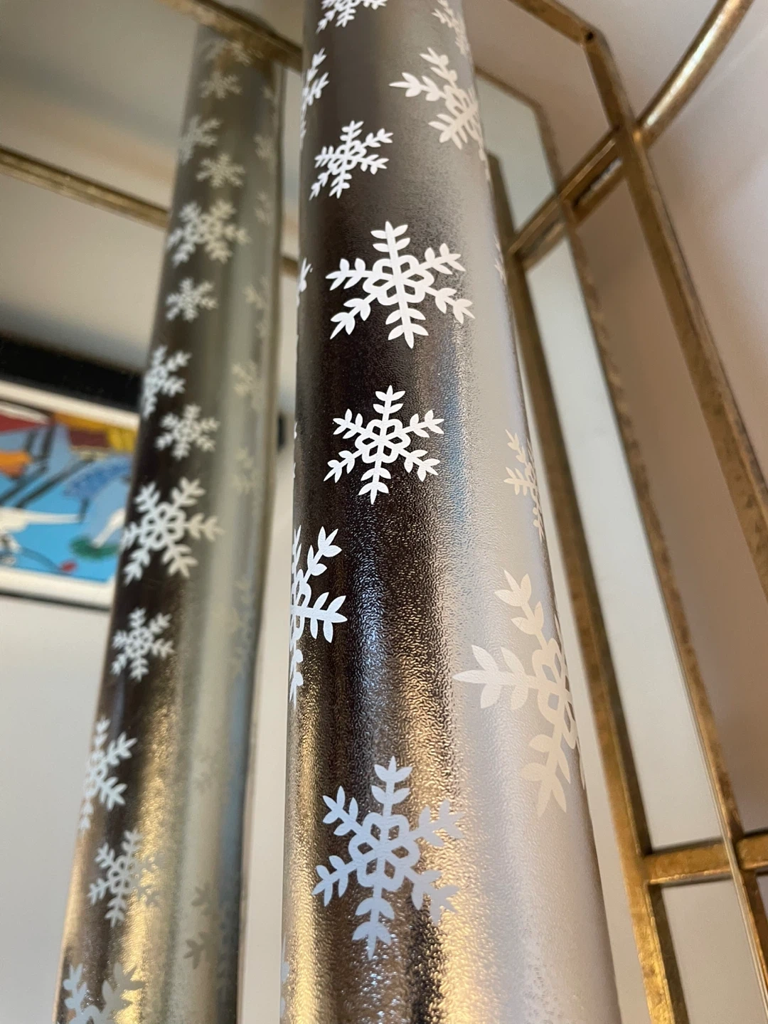 Selling a mega roll of brand new metallic snowflake gift wrap.