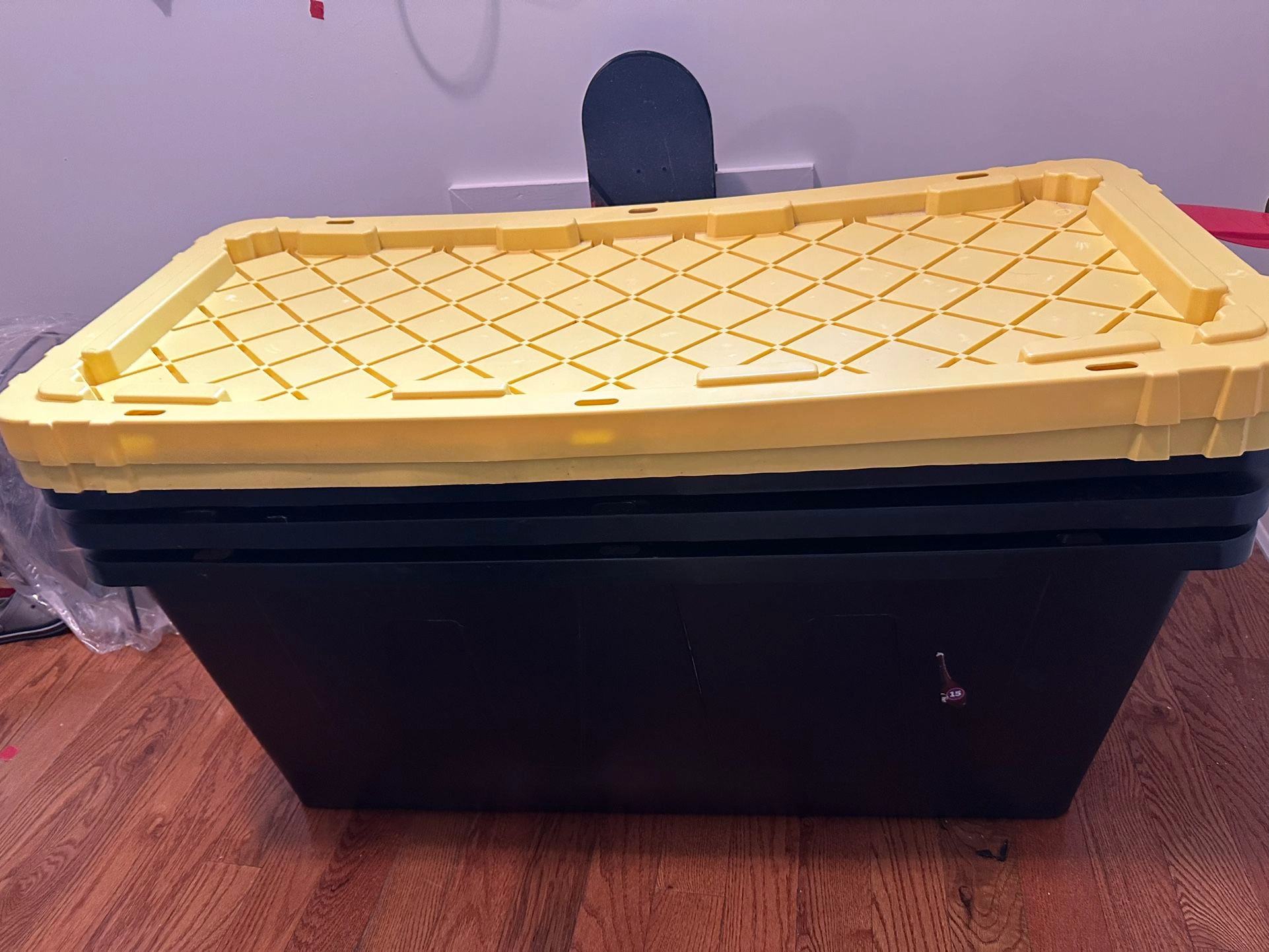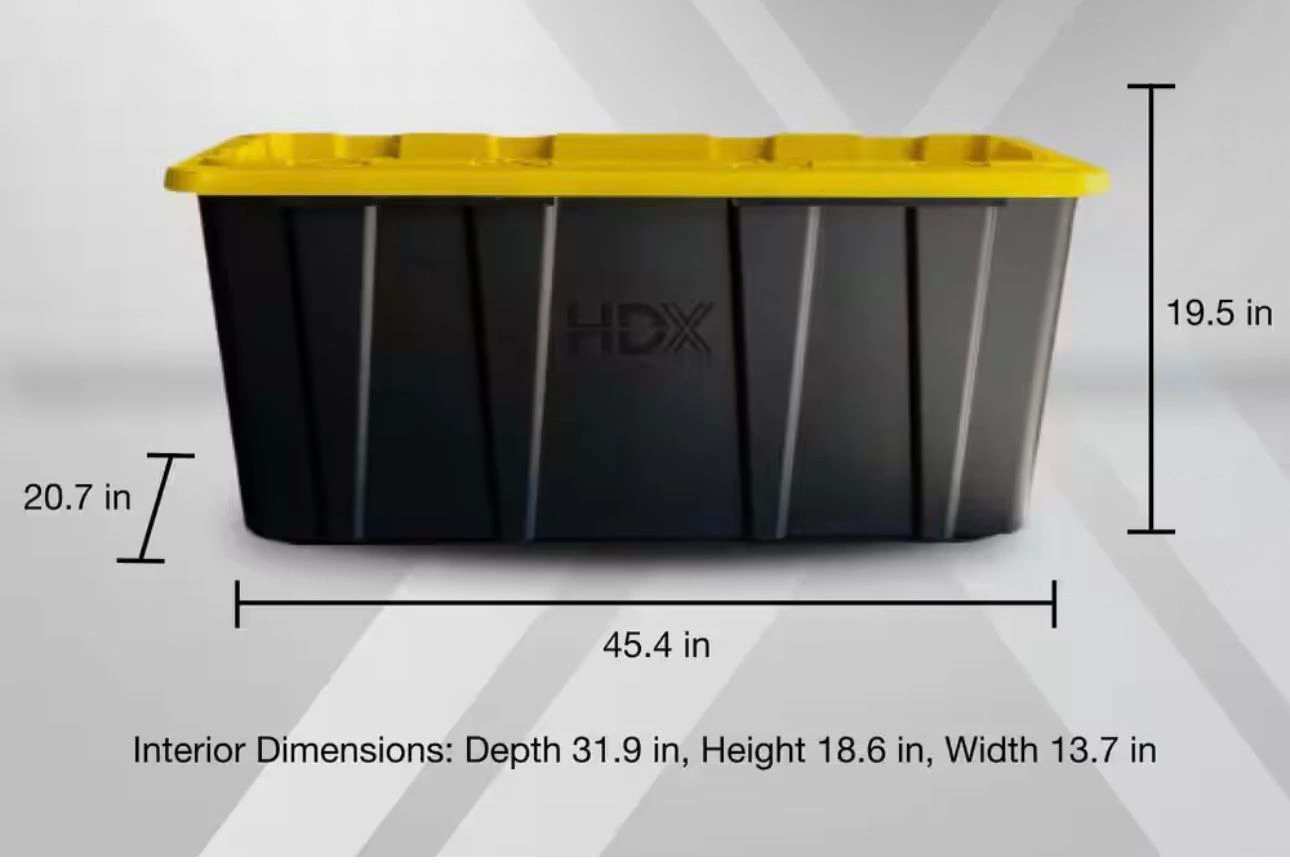 Buy & SellHDX 57 Gal. Tough Storage Tote - Black/Yellow LidHDX 57 Gal. Tough Storage Tote - Black/Yellow Lid$23Dimensions: 45.4" D x 20.7" W x 19.5" H. Available: 3 pieces. $23 each.WHERE TO MEETCheck LocationView MapSELLERDouglasForest Park100 reviews0 chats·1 favorites·1 viewsSEND CHAT TO SELLERHi Douglas! I’m interested in your listing.Hi Douglas! I’m interested in your listing.Get the Karrot app to chatSign In to chat