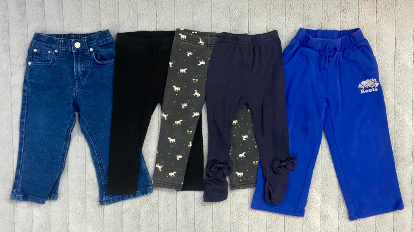 2T girls pants lot. Jeans, tights, sweatpants. From the Gap, Carters and Roots.