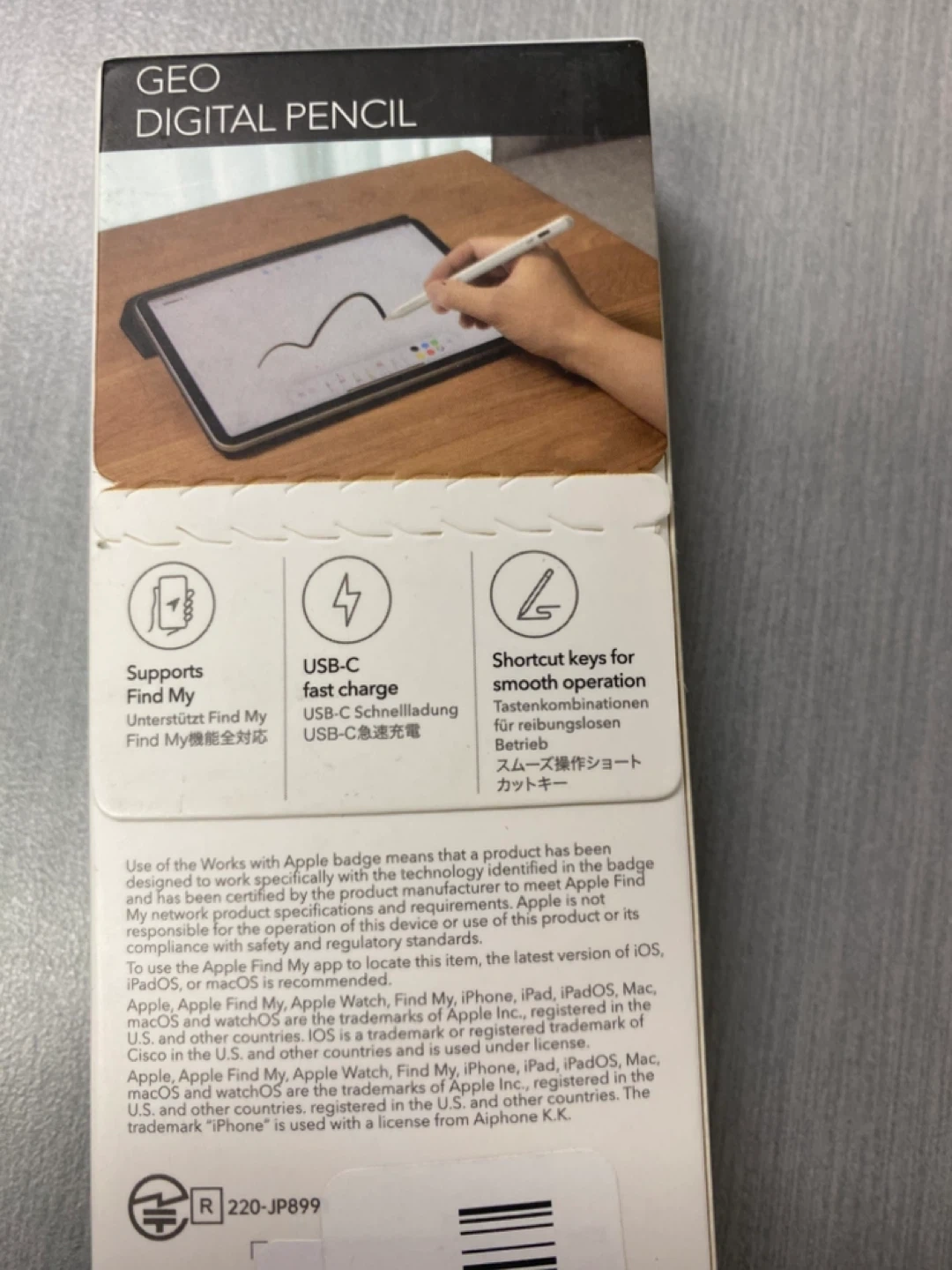 This ESR digital pencil works with Apple Find My and supports USB-C fast charging. It has a replaceable active nib and shortcut keys for smooth operation.