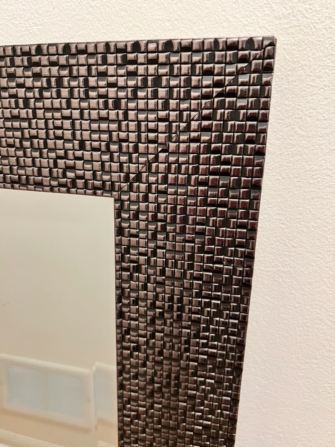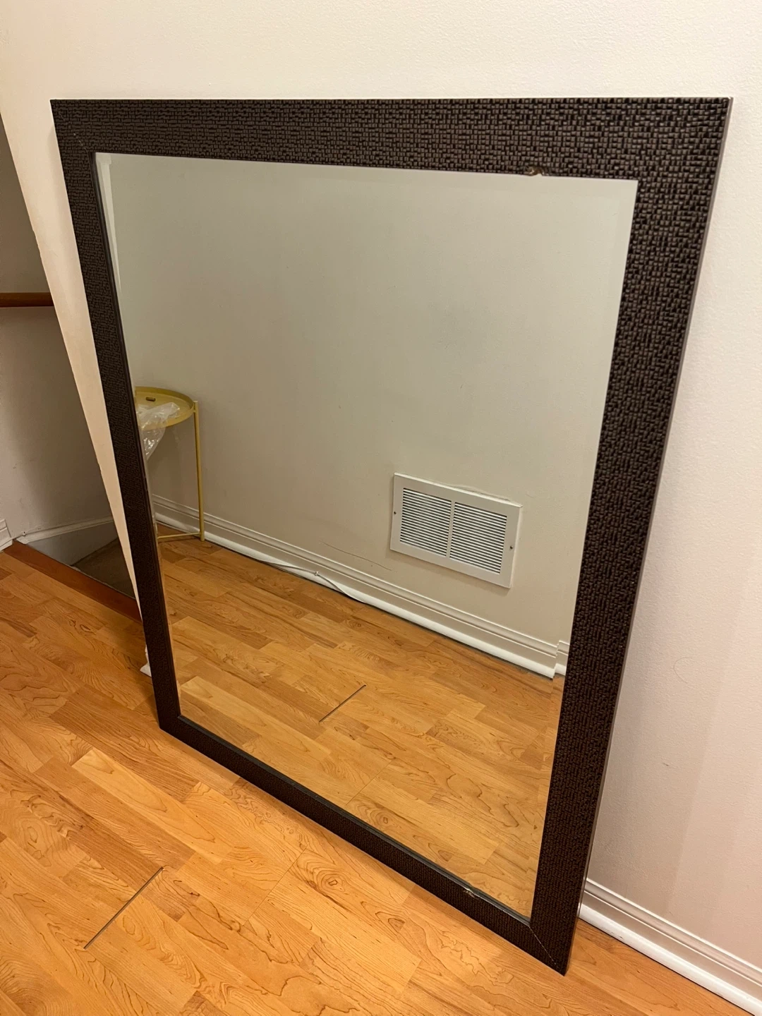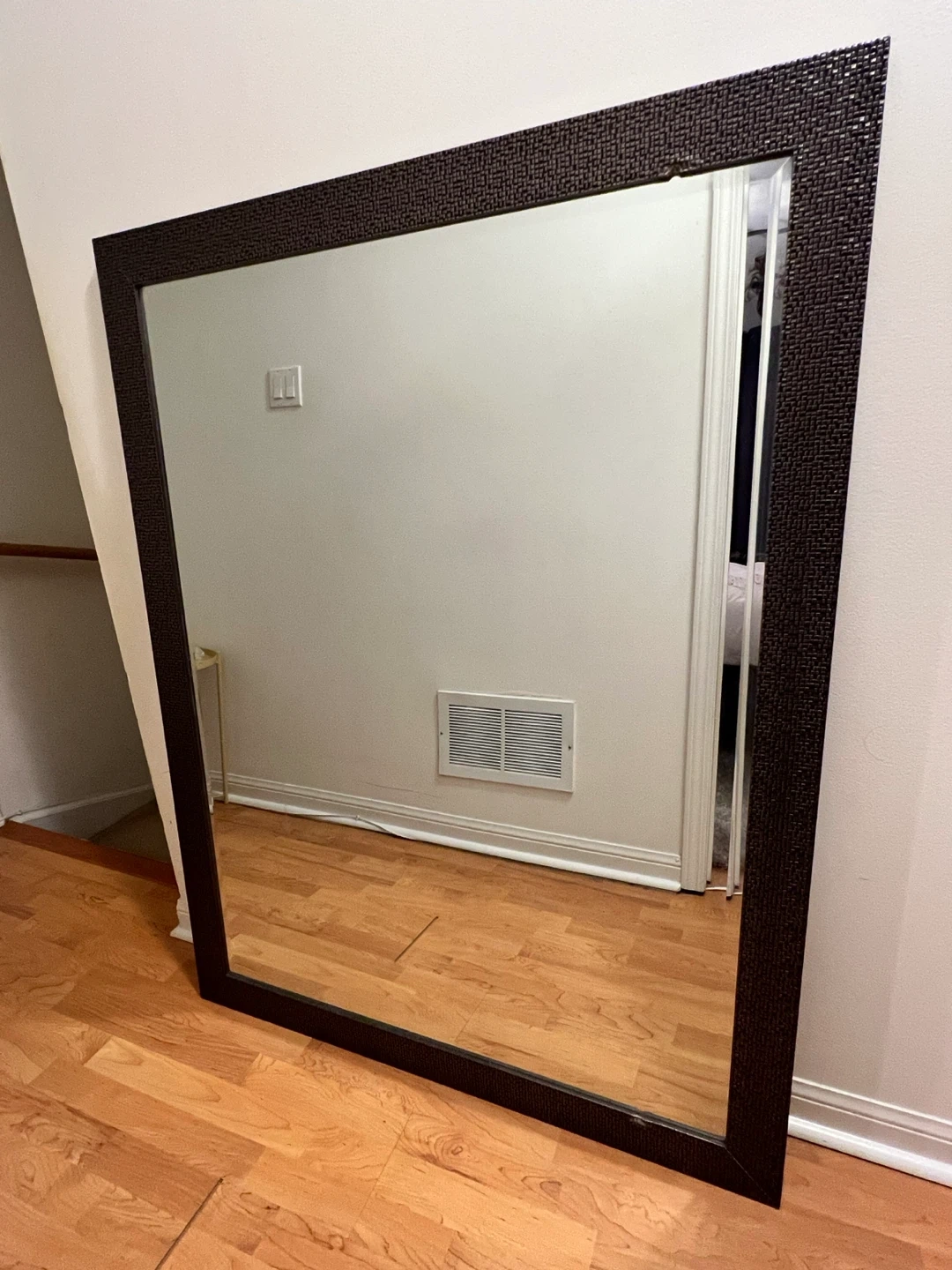 Selling a large mirror with a unique brown textured frame. It measures approximately 53 inches in height and 41 inches in width. It's in great condition and ready to add a touch of style to your space!