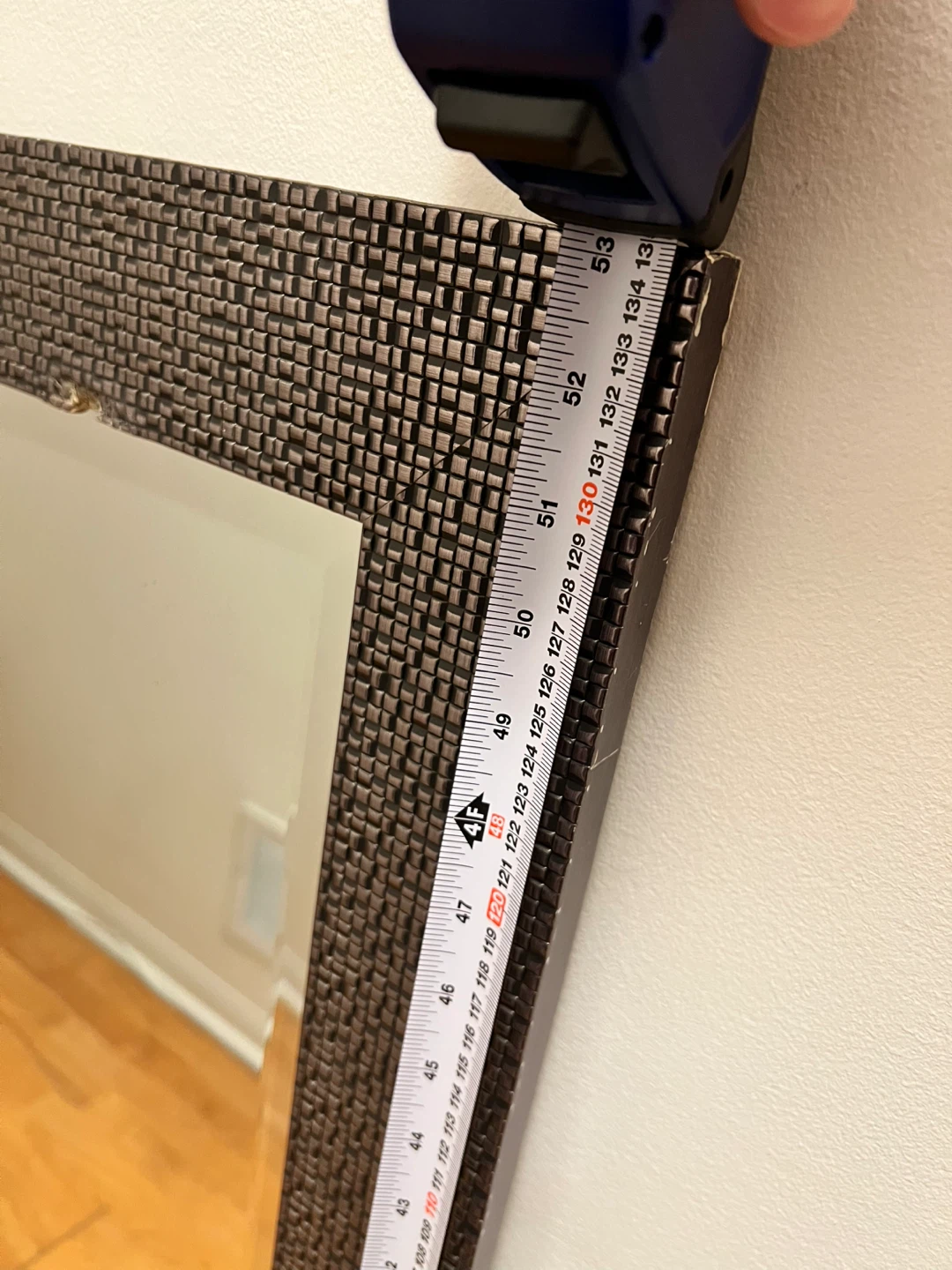 Selling a large mirror with a unique brown textured frame. It measures approximately 53 inches in height and 41 inches in width. It's in great condition and ready to add a touch of style to your space!