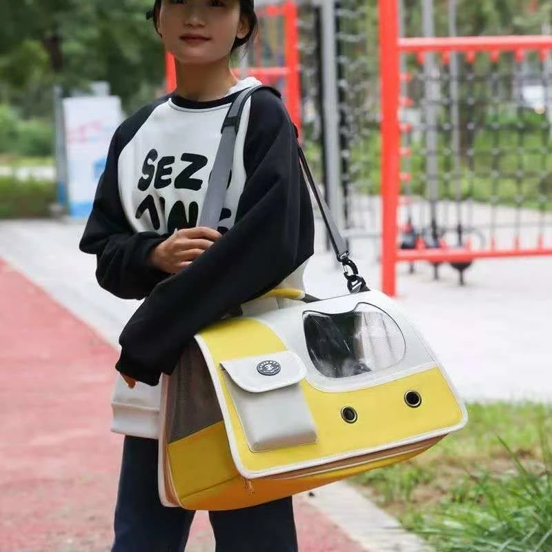 This is a versatile pet carrier bag. It's made with durable materials and features a clear window for your pet to see out. The bag measures 48cm x 42cm x 4cm. This carrier is great for transporting small pets safely and comfortably.