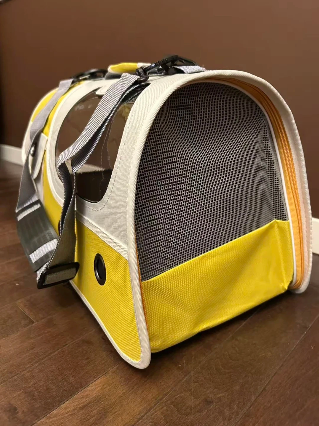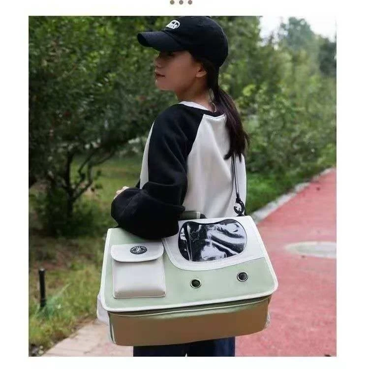 This is a versatile pet carrier bag. It's made with durable materials and features a clear window for your pet to see out. The bag measures 48cm x 42cm x 4cm. This carrier is great for transporting small pets safely and comfortably.