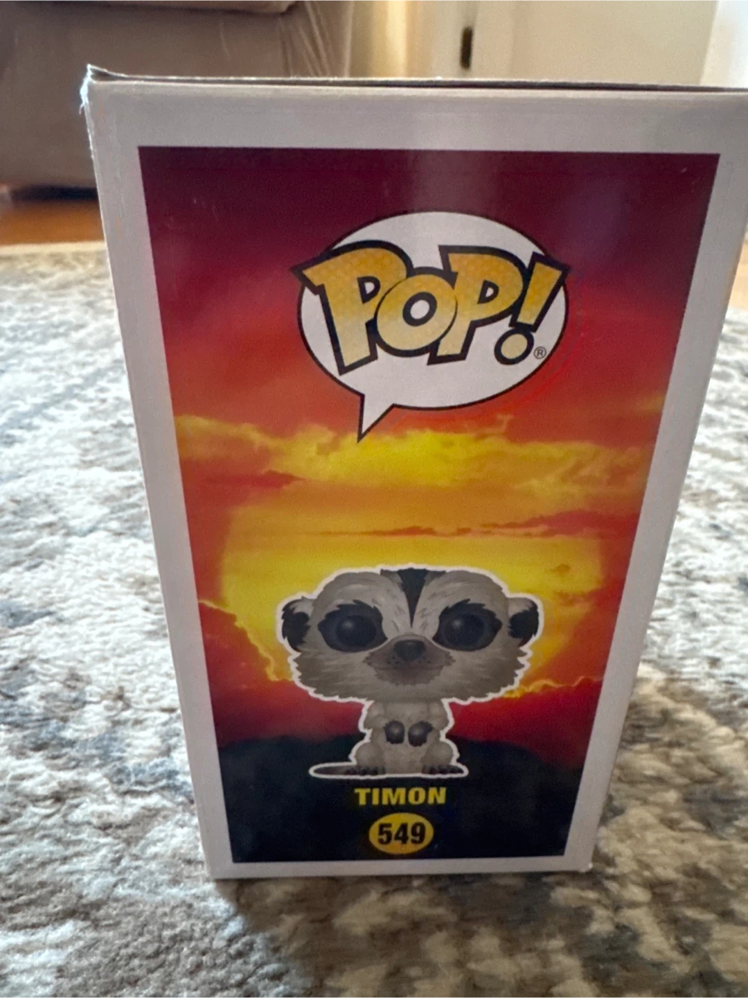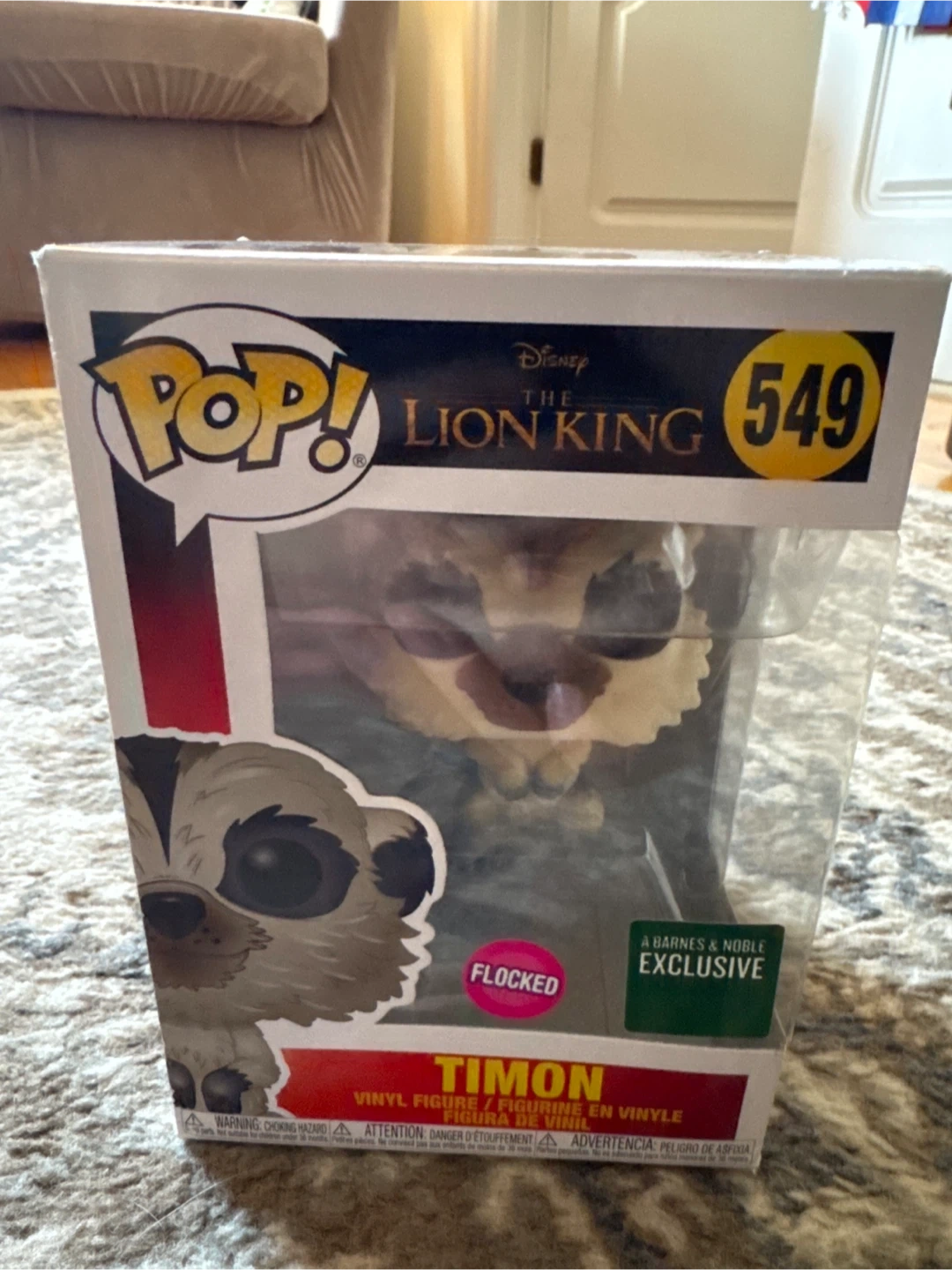 Selling a Funko Pop! of Timon from Disney's The Lion King, number 549. This is a Barnes & Noble exclusive and is flocked. The vinyl figure is in excellent condition and comes in its original box