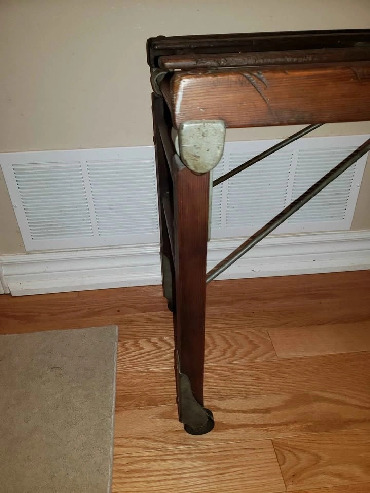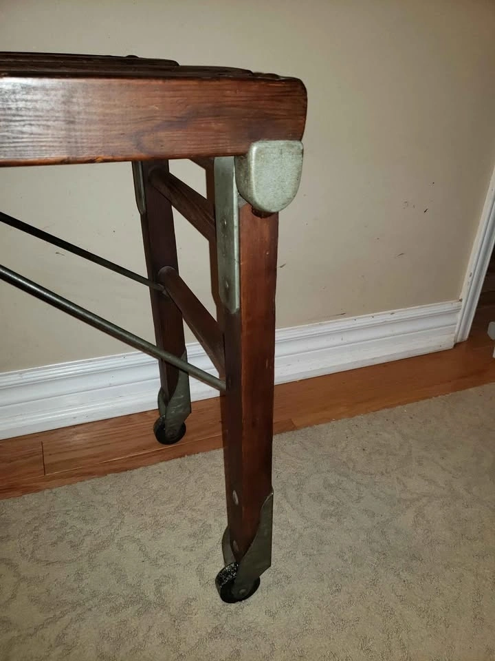 Beautiful antique Beatty wash stand for sale. Originally purchased from an antique dealer in St. George, Ontario. Beatty Brothers Limited was founded in Fergus, Ontario in 1874. The company expanded its product line to include washing machines by the early 1910s. 42" long by 16" wide by 18" high. The legs fold so that the bench can be stored away, taking up less room. The condition is very good with a beautiful old patina to the wood. Has old usage wear and it is still in lovely condition. Original hardware & fasteners. Never painted. Original company markings still visible. Please see photos for details. Available for pick up in Oakville near Dorval Drive and the QEW.