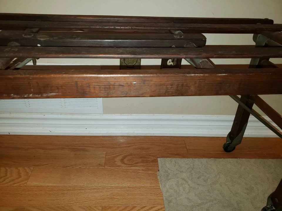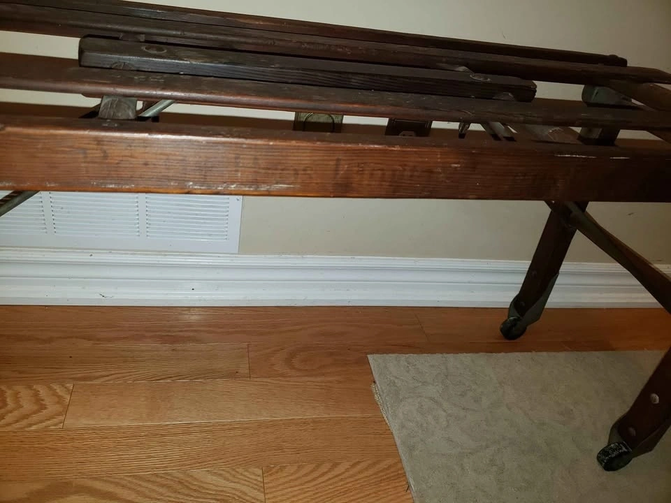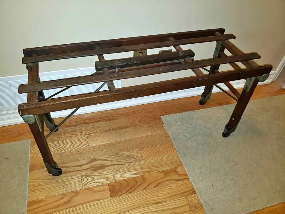 Beautiful antique Beatty wash stand for sale. Originally purchased from an antique dealer in St. George, Ontario. Beatty Brothers Limited was founded in Fergus, Ontario in 1874. The company expanded its product line to include washing machines by the early 1910s. 42" long by 16" wide by 18" high. The legs fold so that the bench can be stored away, taking up less room. The condition is very good with a beautiful old patina to the wood. Has old usage wear and it is still in lovely condition. Original hardware & fasteners. Never painted. Original company markings still visible. Please see photos for details. Available for pick up in Oakville near Dorval Drive and the QEW.