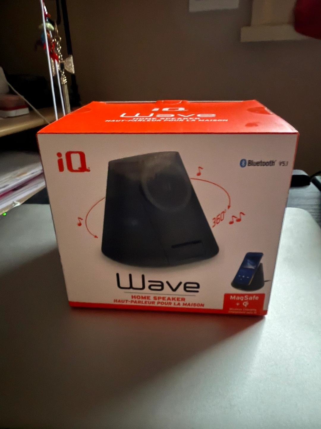 10360° sound from cylindrical design. Premium sound and takes your music to another level. Perfect for condos and apartments. 10W premium bass. 15W Qi wireless charger with flip-out stand. Bluetooth 5.1 technology. Use with Apple and Android devices. Never used, new in box.