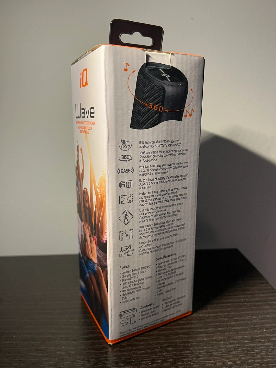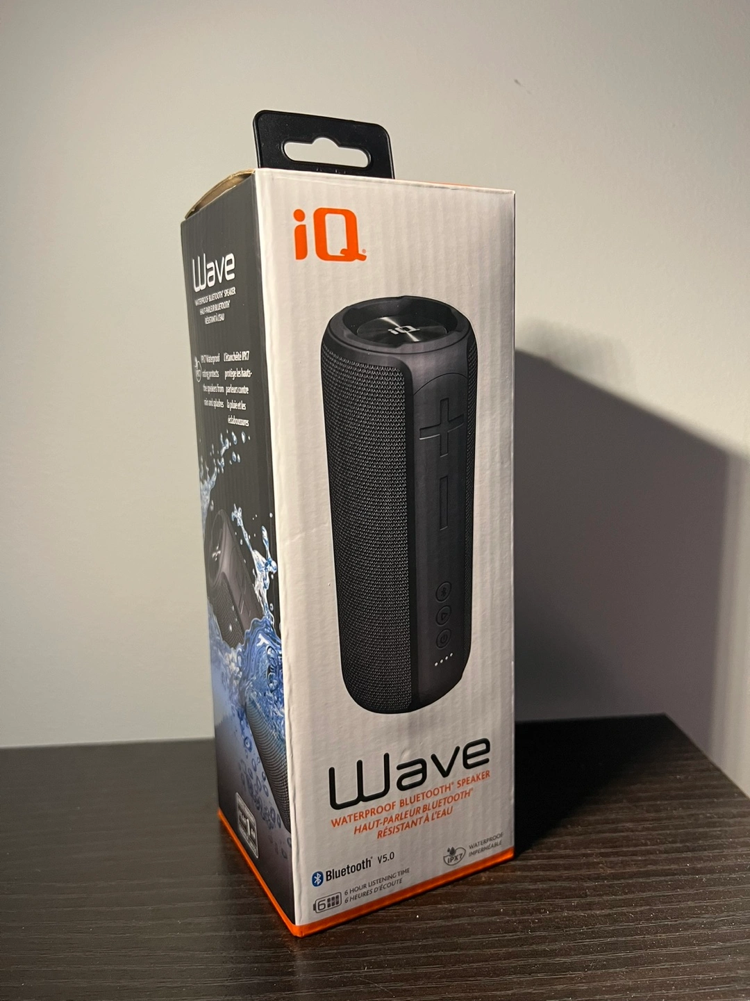 55Selling a brand new iQ Wave Waterproof Bluetooth Speaker! It's still in its original packaging. Key features include: - IPX7 Waterproof design - 360° sound projection - Up to 6 hours of battery life - Compatible with smartphones, tablets, and laptops Comes with the speaker and charging cable