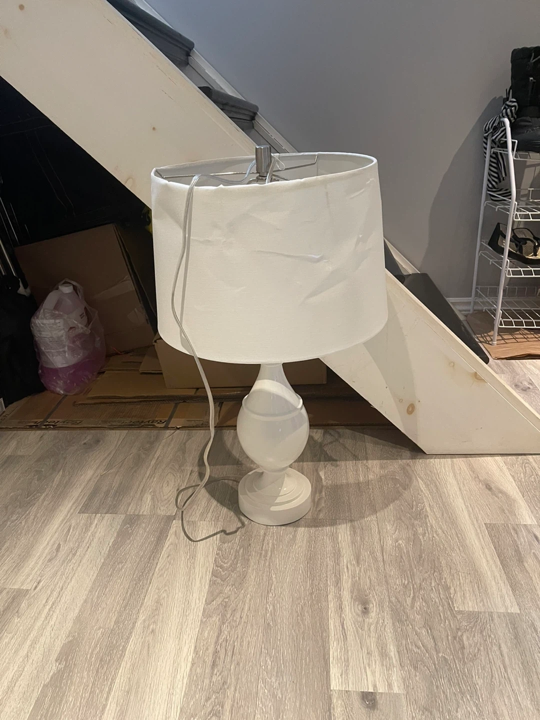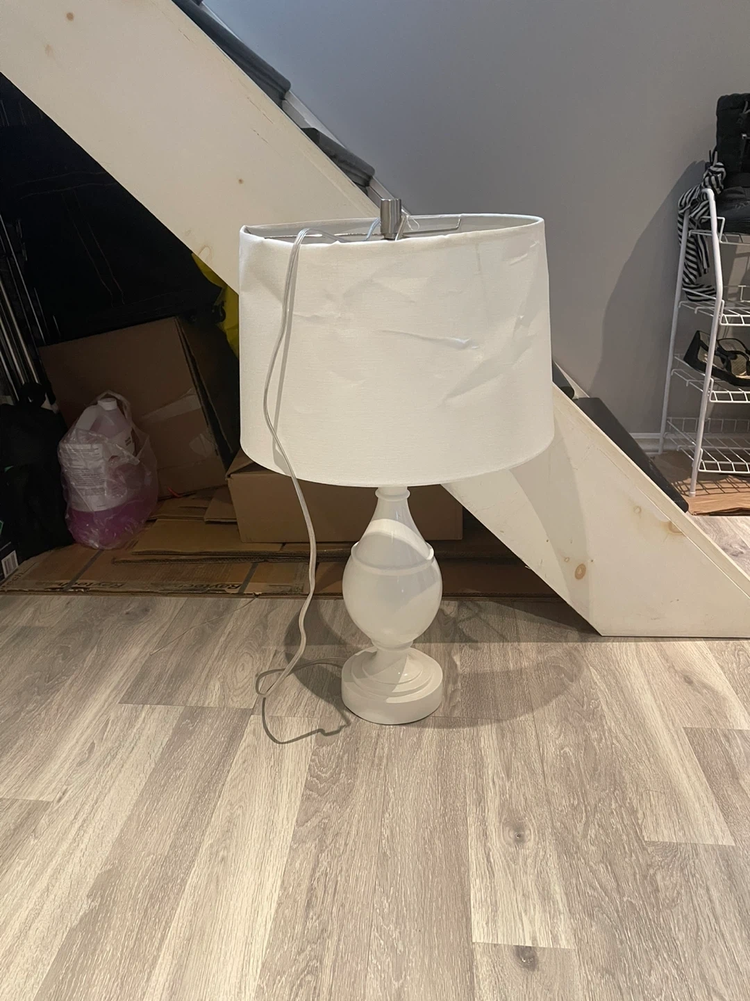 Selling a lovely white table lamp! It features a classic design with a fabric shade. Perfect for adding a soft glow to any room in your home. It's in great condition and ready to brighten up your space