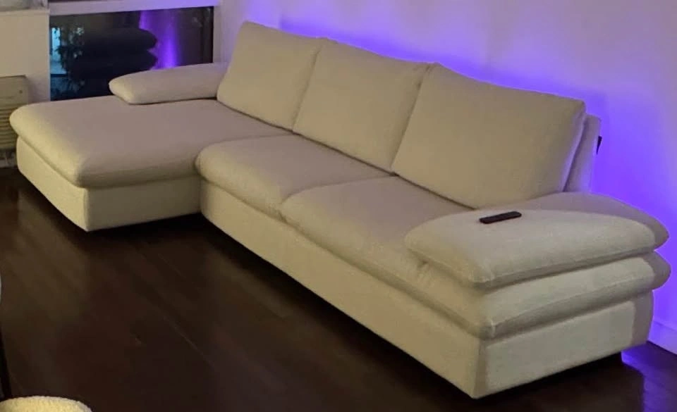 Features wide ratchet arms. Made in Italy. Dimensions: 122"L x 61"W x 35"H. Seat height: 18"; seat depth: 22"; arm height: 23". Feel free to message if you have any questions!