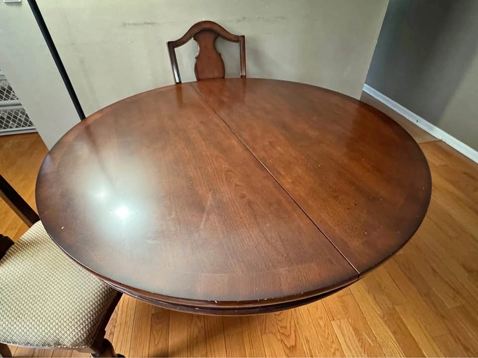 Table in good condition with a few nicks on top. Very heavy and sturdy table. Bottom was bitten by a dog. Great table if you want to repaint or chalk paint or leave as is. Pick up only. Definitely need a truck. Cash only.