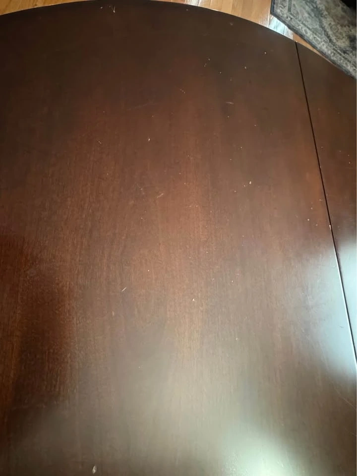 Table in good condition with a few nicks on top. Very heavy and sturdy table. Bottom was bitten by a dog. Great table if you want to repaint or chalk paint or leave as is. Pick up only. Definitely need a truck. Cash only.