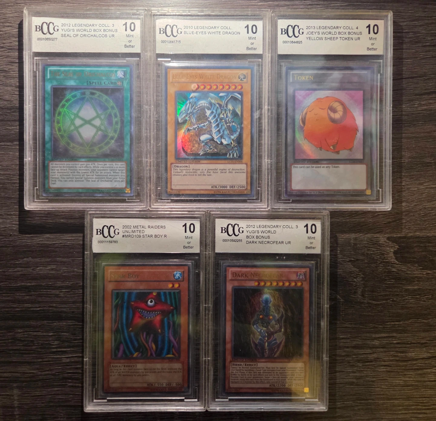 Five graded Yu-Gi-Oh! trading cards. Open to offers on all 5 or they will be priced individually below. Prices based on Ebays recently sold.