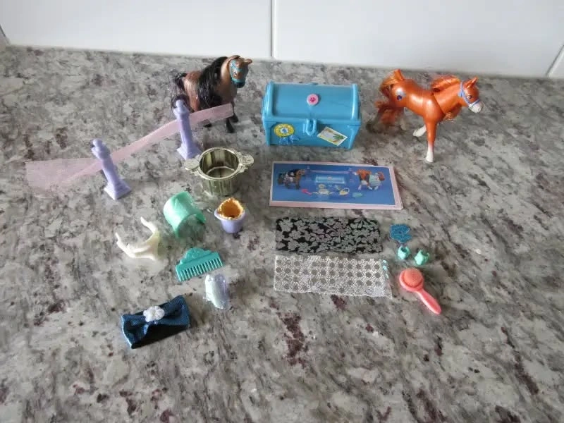 1) 1994 Kenner Littlest Pet Shop Prancing Parade Ponies with Treasure Trunk *Complete Set* with Package Cutout