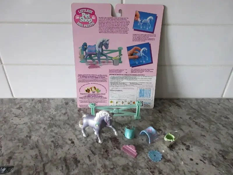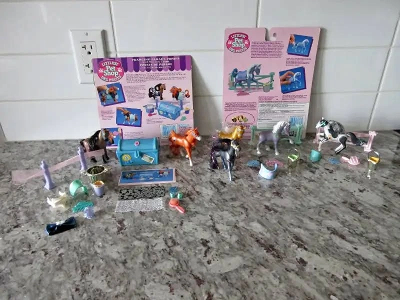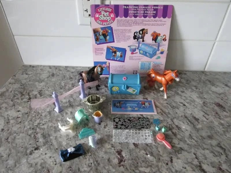 1) 1994 Kenner Littlest Pet Shop Prancing Parade Ponies with Treasure Trunk *Complete Set* with Package Cutout