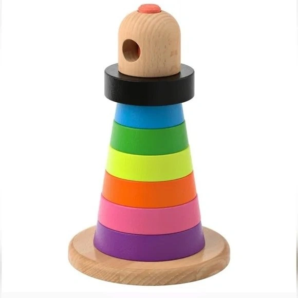 The Ikea Stackable Wooden Lighthouse is fun and engaging any way you stack it! Enhance your little ones' imagination while helping in development of fine motor skills. This toy has tons of fun ways for your baby to play and explore! Stacking toys promote early child development for both the brain and body. As your baby learns to stack the rings on the base from biggest to smallest, they can begin to understand the concept of relative size.