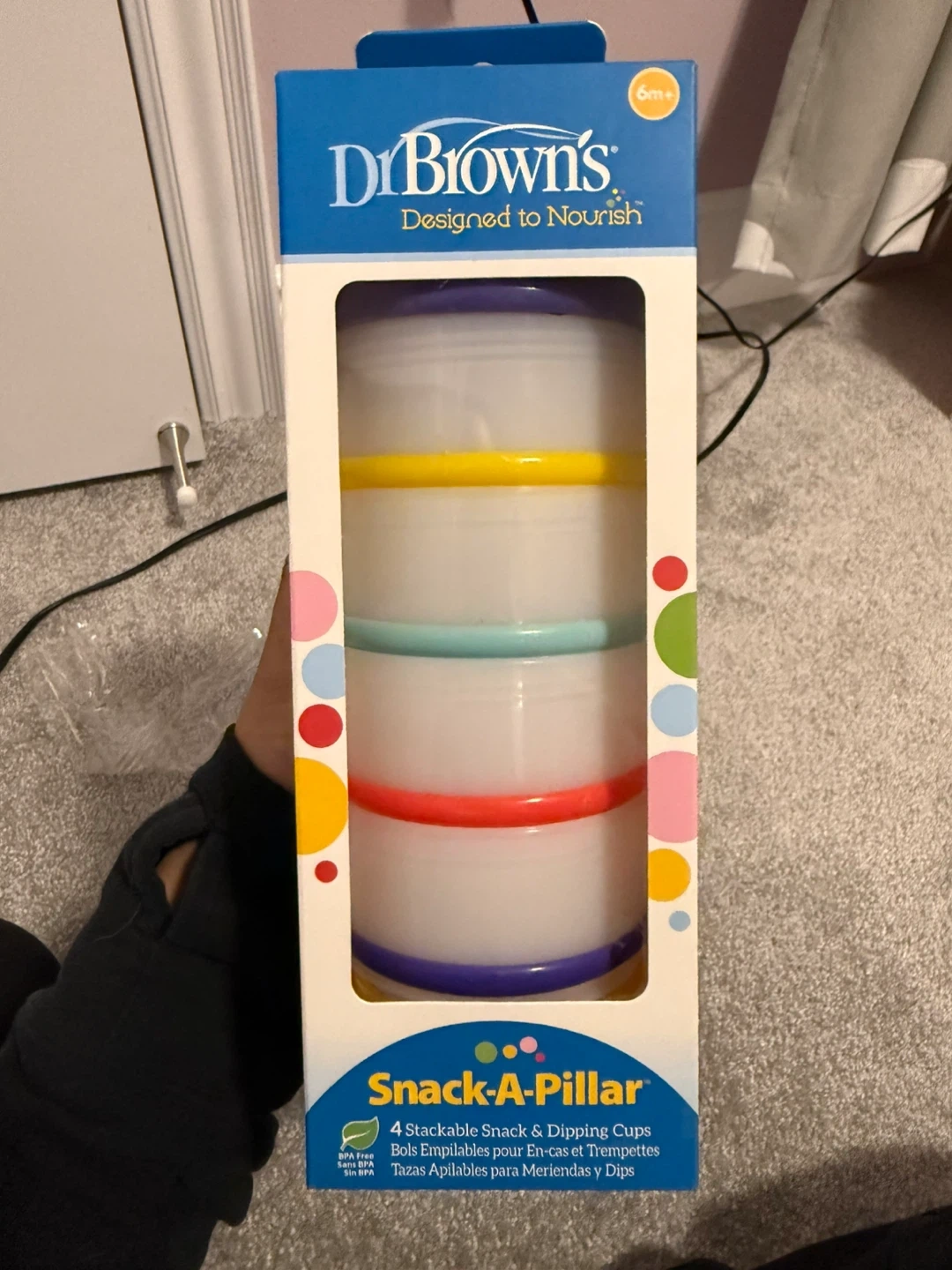 Brand new Dr. Brown's Snack-A-Pillar! Stackable snack and dipping cups. Dishwasher and freezer safe.