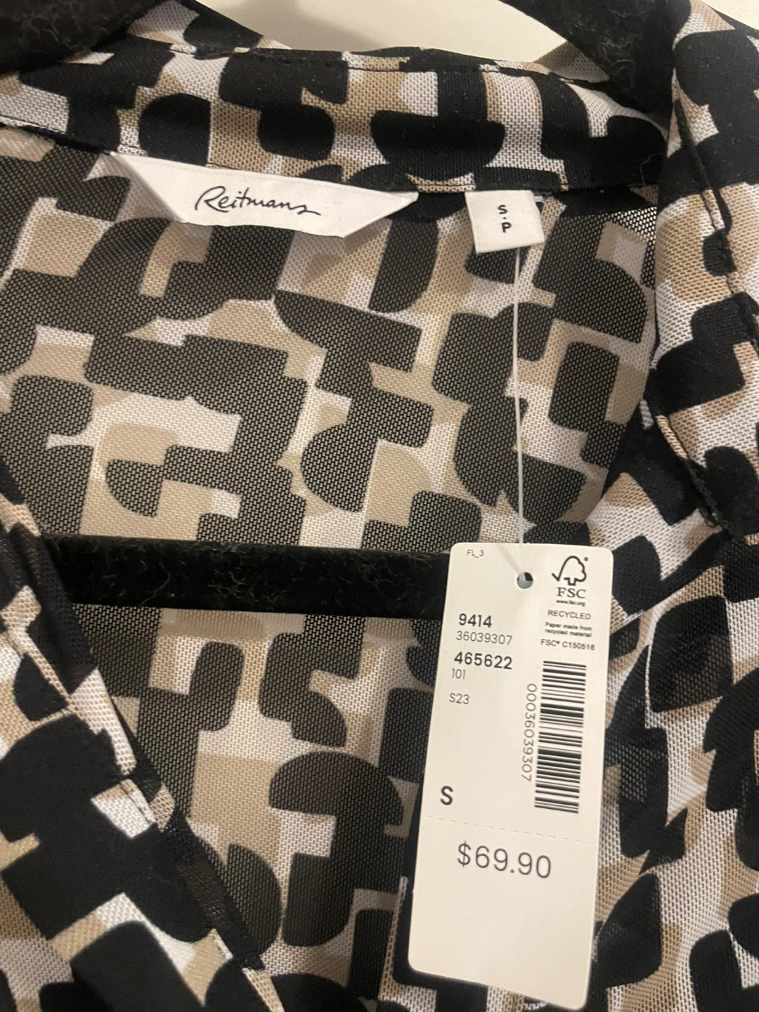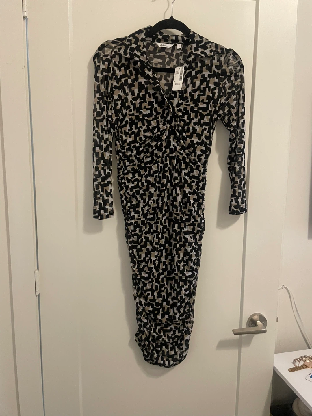 This is a Reitmans dress in size small. It features a unique geometric pattern and is in new condition with tags still attached! Originally bought for $69.90