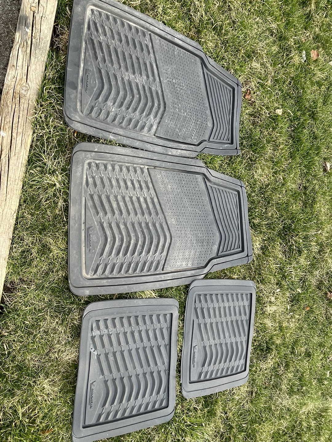 Set of four used michelin black car floor mats. Used for 1 winter. Like new condition. Just need cleaning. Universal fit.