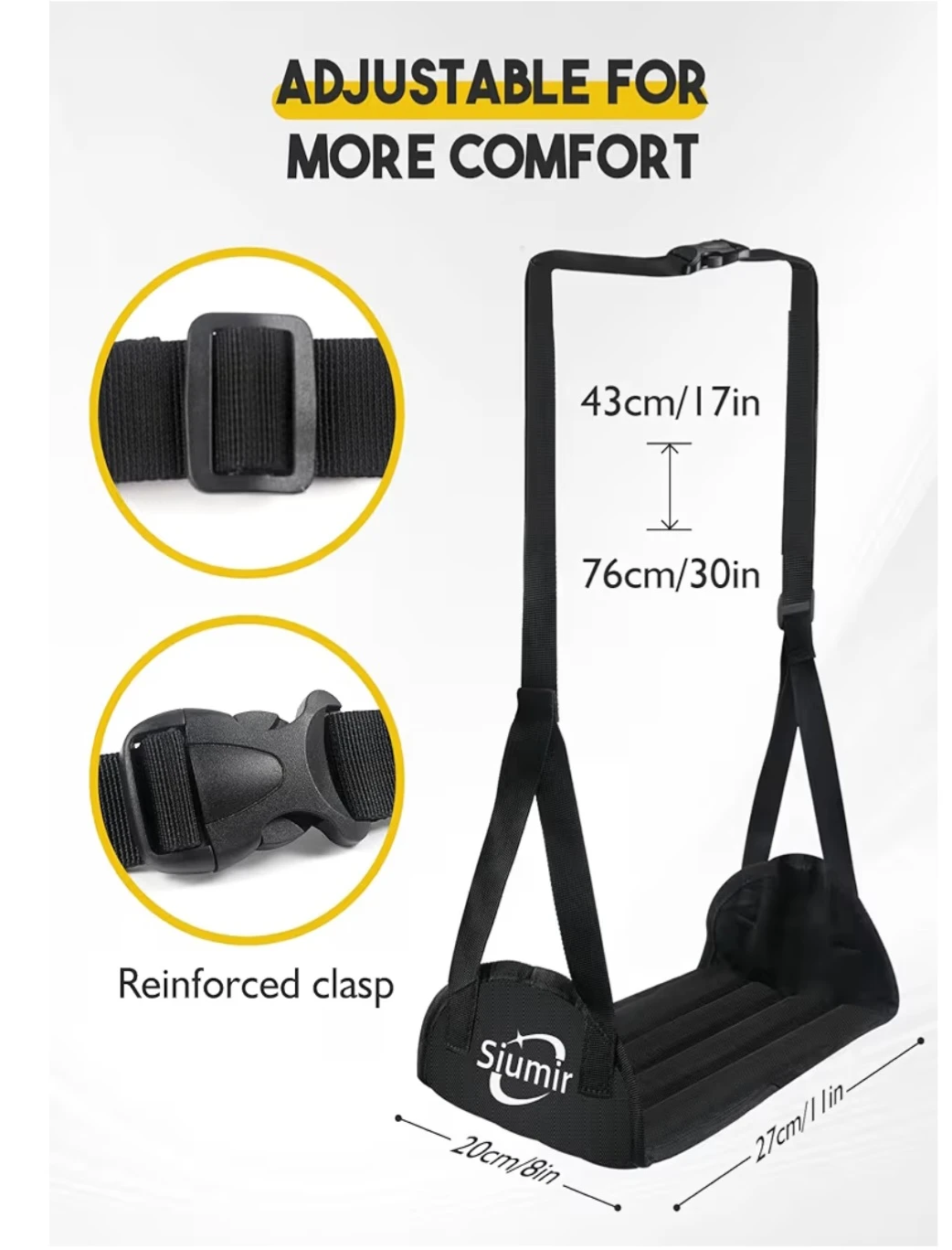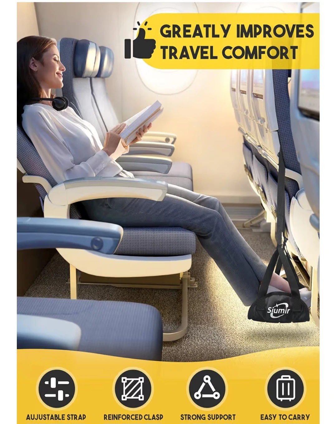 Siumir Airplane Foot Rest, Wider Foot Hammock for Plane Travel to Relax Your Feet, Upgraded Support/No Clashing/Thickened Foam/Portable Design, Also for Long Car Trips and Offices