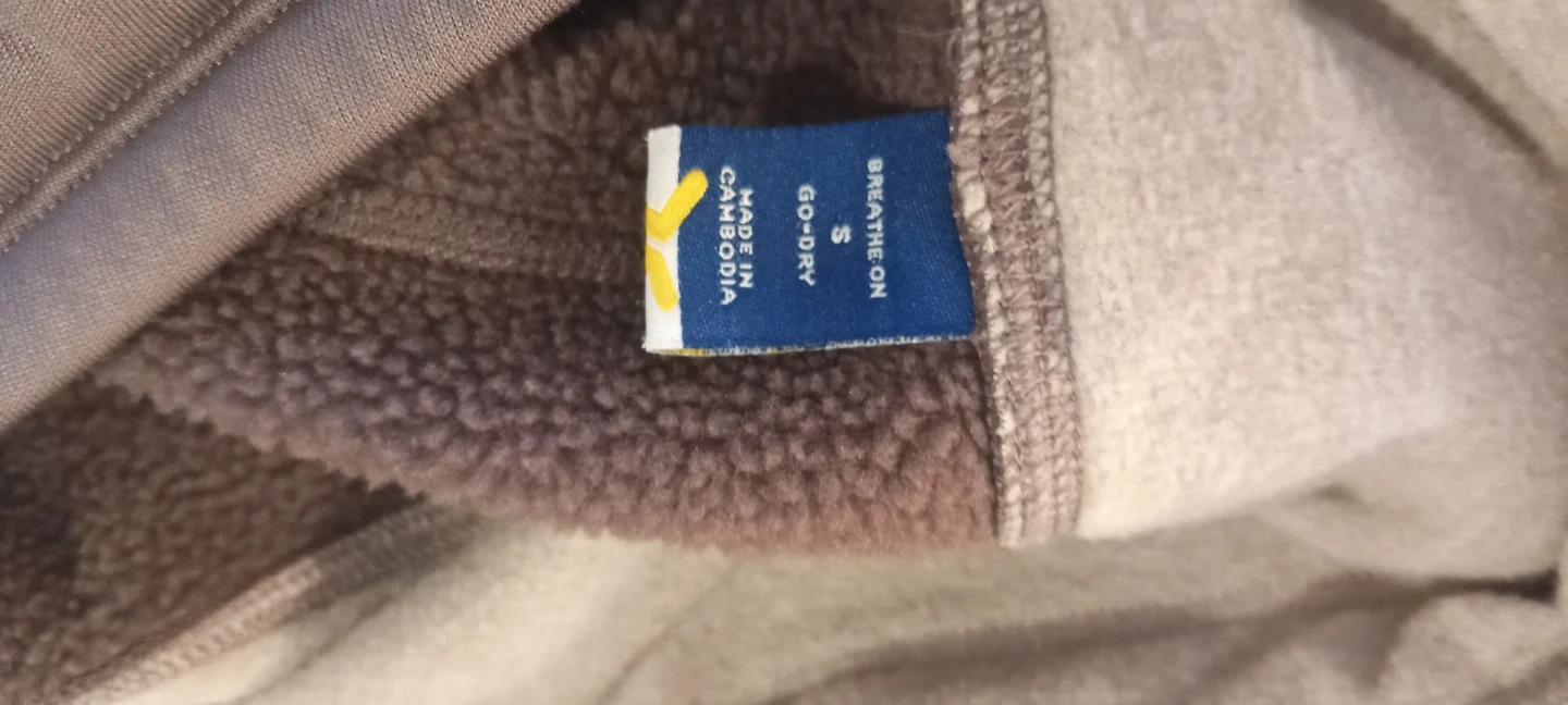 These pants are made with a breathable, go-dry material. They're a size small and feature multiple pockets. Made in Cambodia. Lined inside