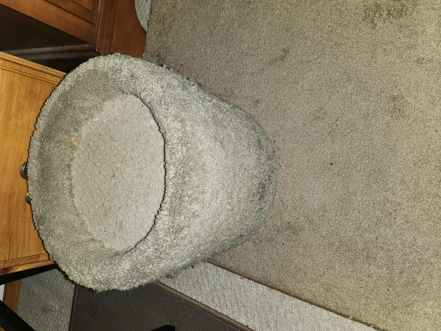 Small cat house/scratcher for sale. It's actually light green if that matters. It's mostly not used except the spot in the third pic. (It's light usage, sorry the pics are special.)