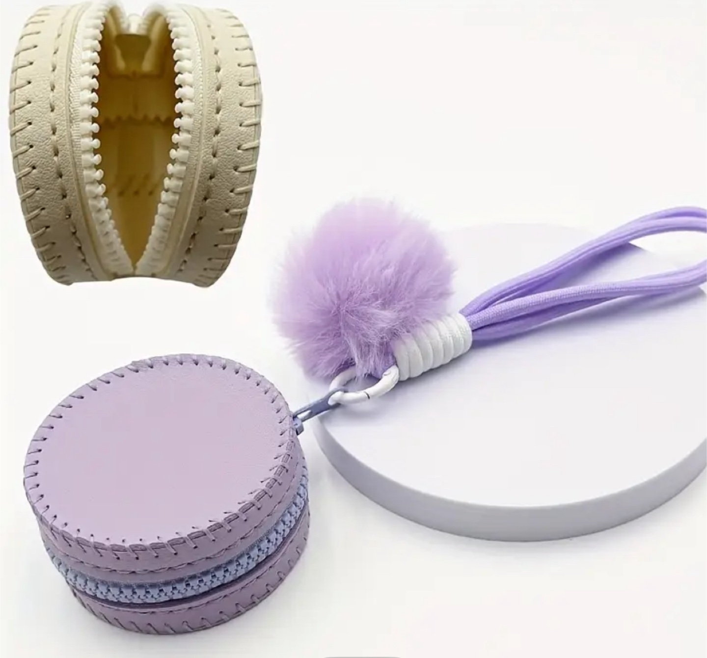 I have two adorable coin purses up for grabs! One is a soft pastel green and the other is a lovely lavender. Both have a fluffy pom-pom charm and a convenient wrist strap. Perfect for keeping your change organized in style!