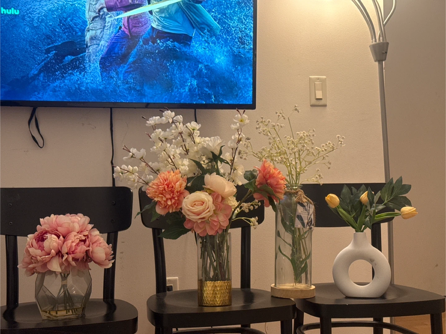 Selling a variety of decorative flower arrangements. They're perfect for adding a touch of color and charm to any room. Each arrangement is unique and adds a cozy vibe to your living space. All for $30 or each for $10