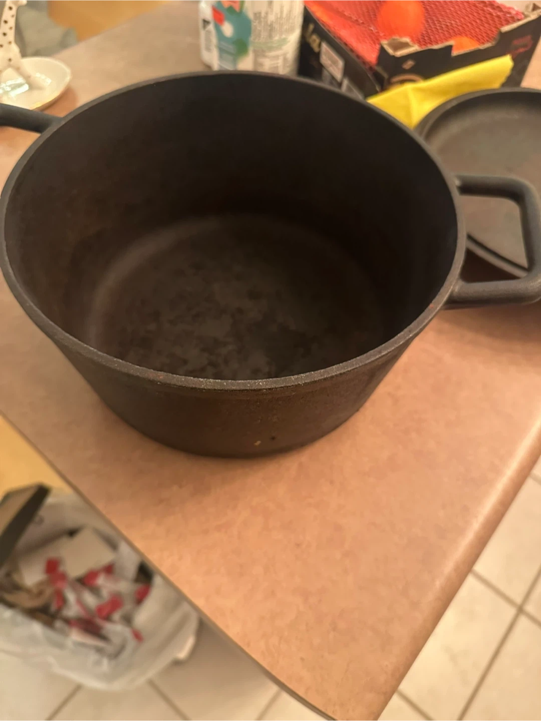 Selling a Lagostina cast iron Dutch oven. It's in good condition and ready for your next stew or roast! Could definitely use a proper clean. FYI it’s quite heavy