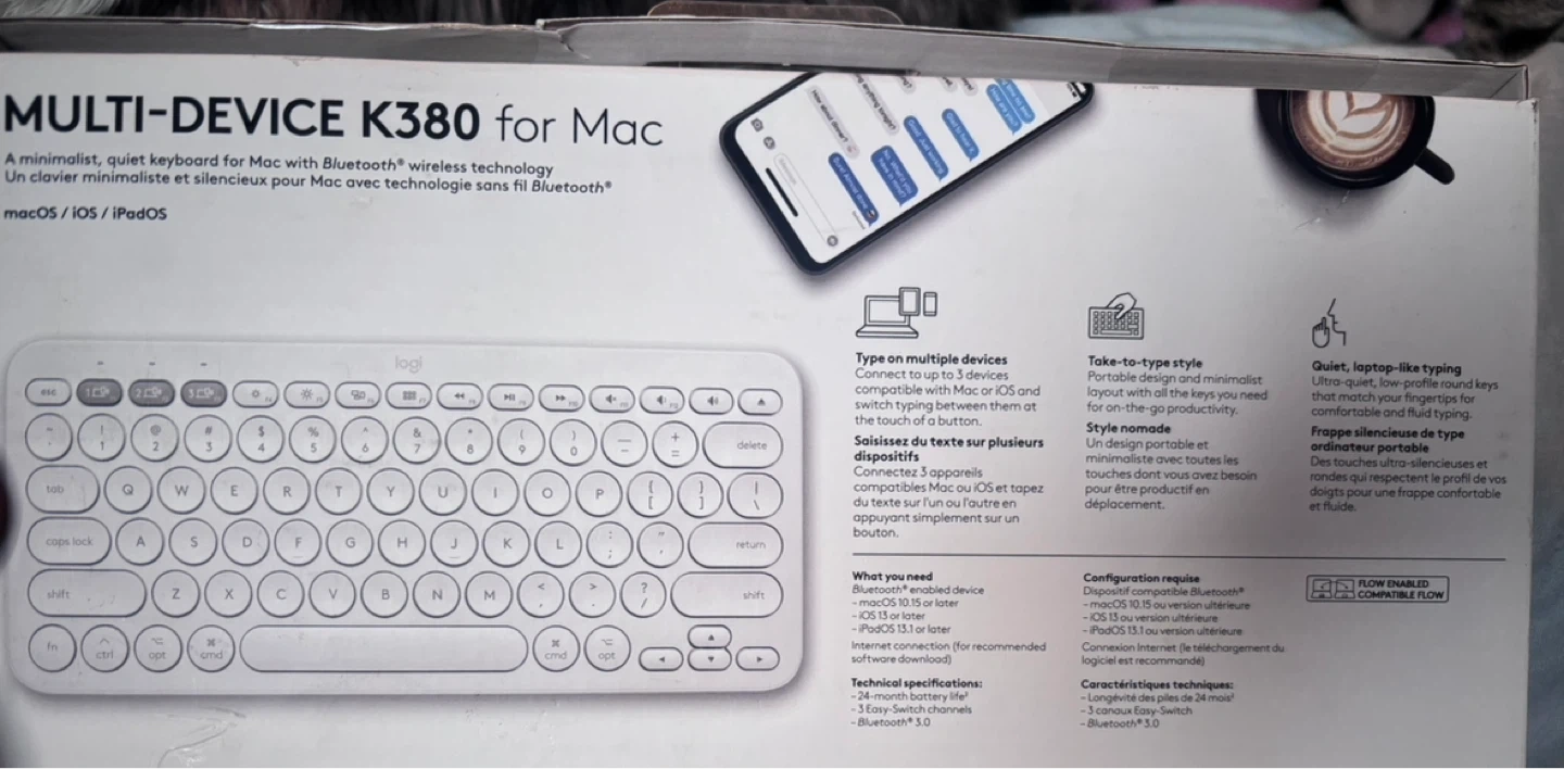 This Logitech K380 keyboard offers quiet, laptop-style typing designed for Mac, iOS, and iPad. It connects wirelessly via Bluetooth and supports up to three devices, allowing easy switching between them. Its compact design makes it portable for on-the-go productivity.