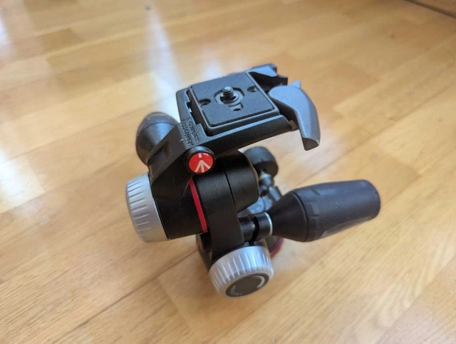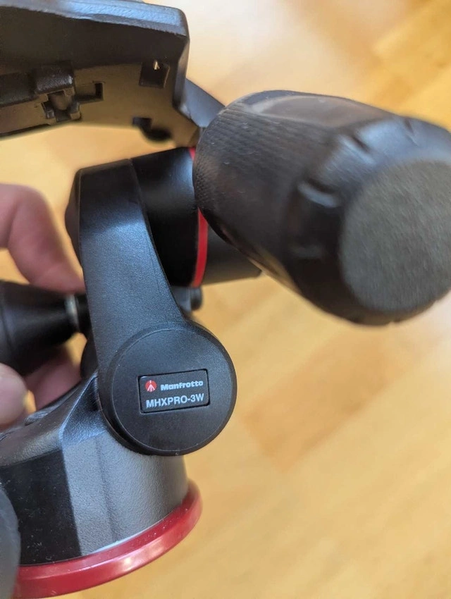 Selling a professional Manfrotto MHXPRO-3W 3-way head in excellent condition. If you find ball heads too finicky for precise framing, this is the solution. Handles retract for easy storage. Independent control over all 3 axes with friction adjustment. Easily holds a pro body with a 70-200mm lens. Comes with the quick-release plate. Currently on sale for $227+tax at Henry's. Non smoking home. One small nick on tip of quick plate release lever, otherwise shows hardly any use. Just the tripod head, no legs. Check out my other ads for several sets of pro tripod legs.