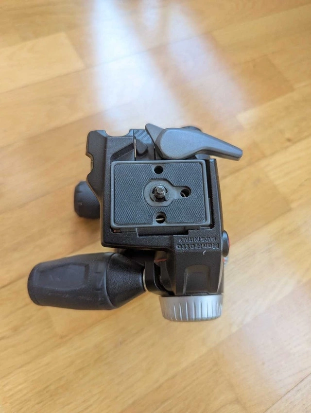 Selling a professional Manfrotto MHXPRO-3W 3-way head in excellent condition. If you find ball heads too finicky for precise framing, this is the solution. Handles retract for easy storage. Independent control over all 3 axes with friction adjustment. Easily holds a pro body with a 70-200mm lens. Comes with the quick-release plate. Currently on sale for $227+tax at Henry's. Non smoking home. One small nick on tip of quick plate release lever, otherwise shows hardly any use. Just the tripod head, no legs. Check out my other ads for several sets of pro tripod legs.