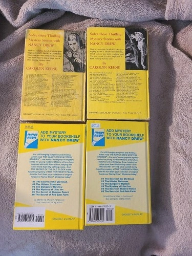 Lot of 4 Nancy Drew mystery books. Includes "The Mystery at Lilac Inn" and "The Secret of the Old Clock". Two books are vintage and show some age, while the two newer ones are practically new, maybe opened once. Sold as is. Feel free to message if you have any questions!