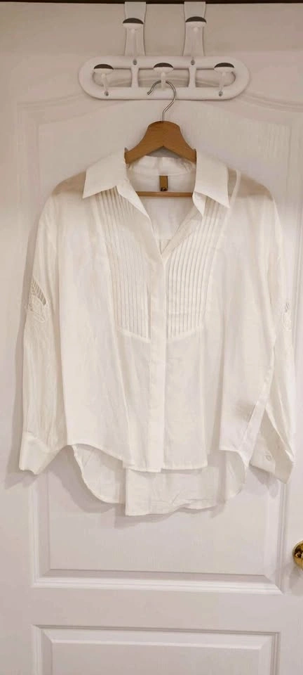 White Pleated Blouse Embroidered Sleeves size medium