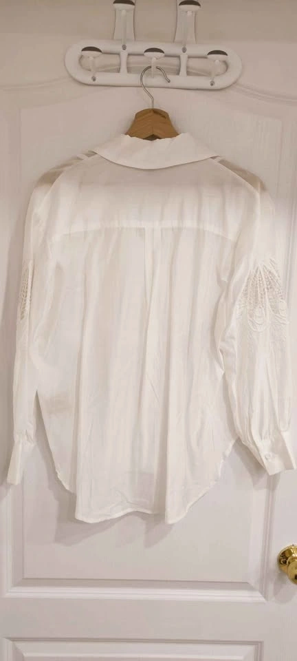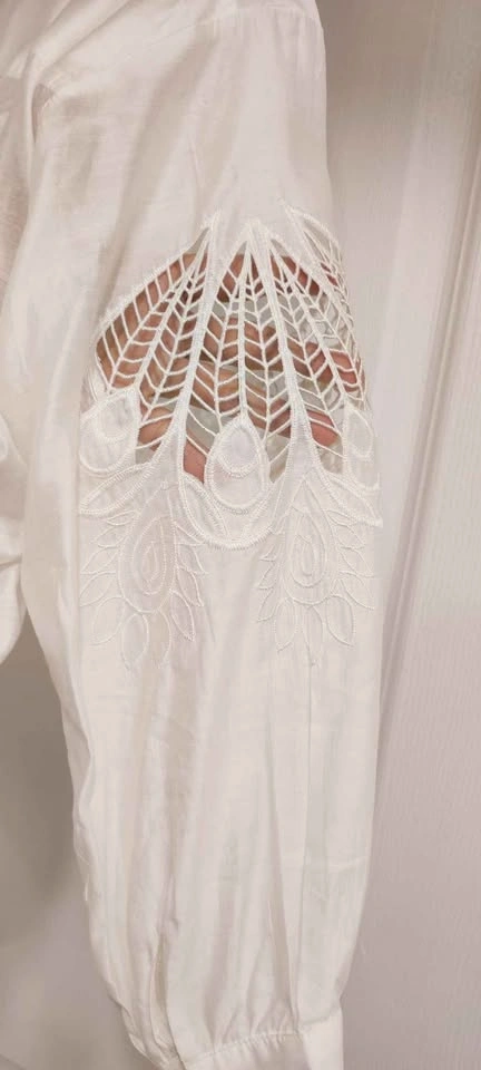 White Pleated Blouse Embroidered Sleeves size medium