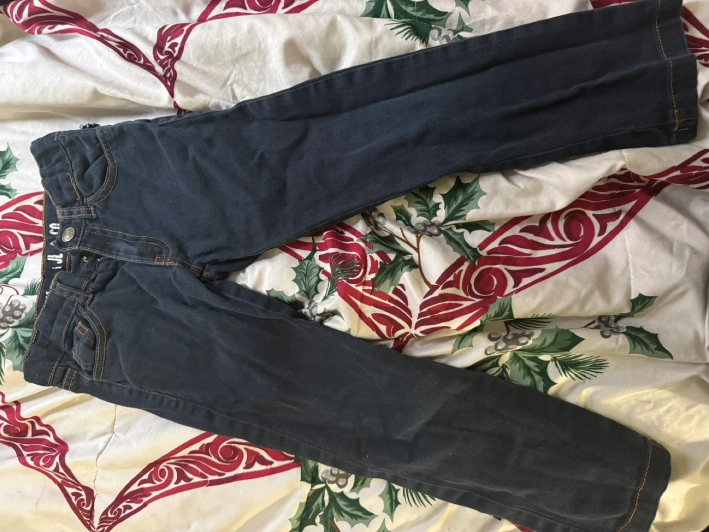 These are Old Navy boys jeans in a dark wash. They have a classic five-pocket design and a button and zip closure. Denim material. Size 6