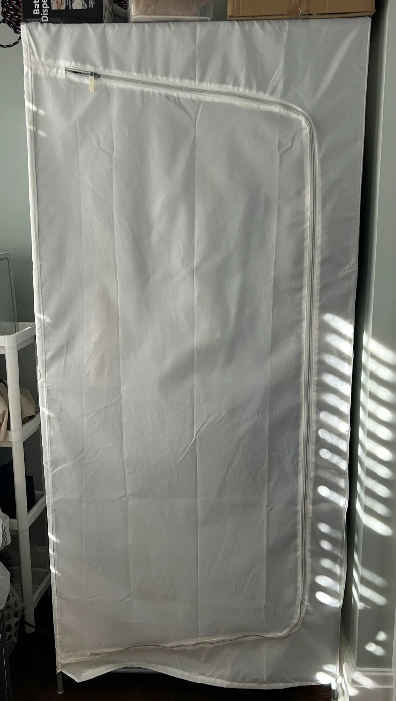 Selling a closet with a zippered door. It's great for extra storage and keeping clothes organized. It is in good condition and ready for a new home!