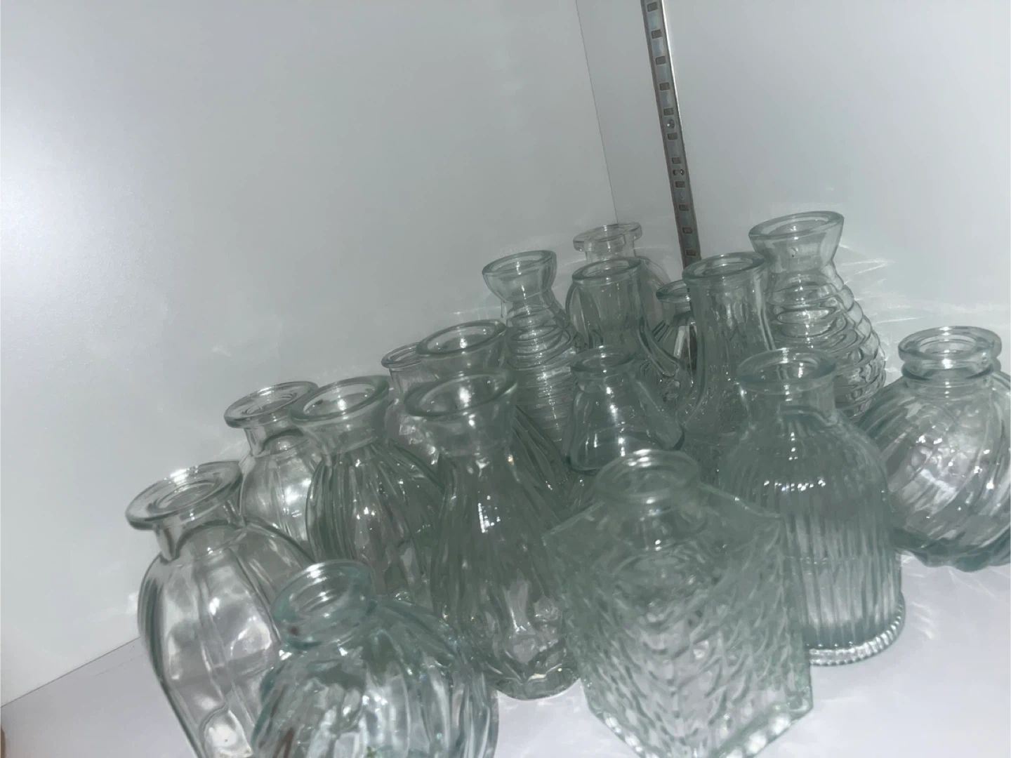 Selling a set of 15 small glass vases. They're all in great shape and would be perfect for decorating a wedding, party, or just adding a touch of elegance to your home. $6 each !
