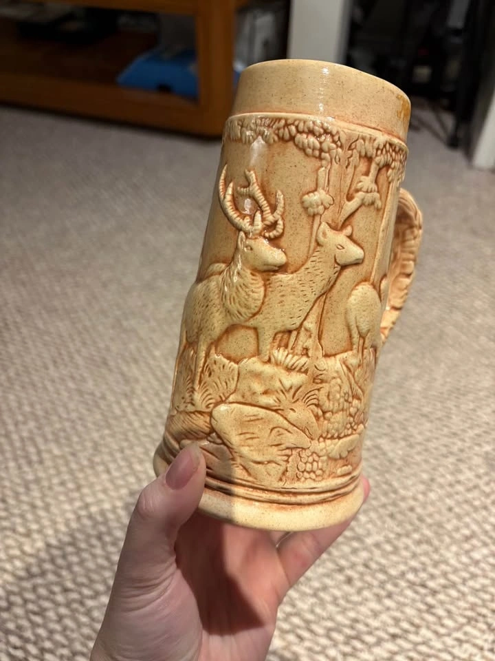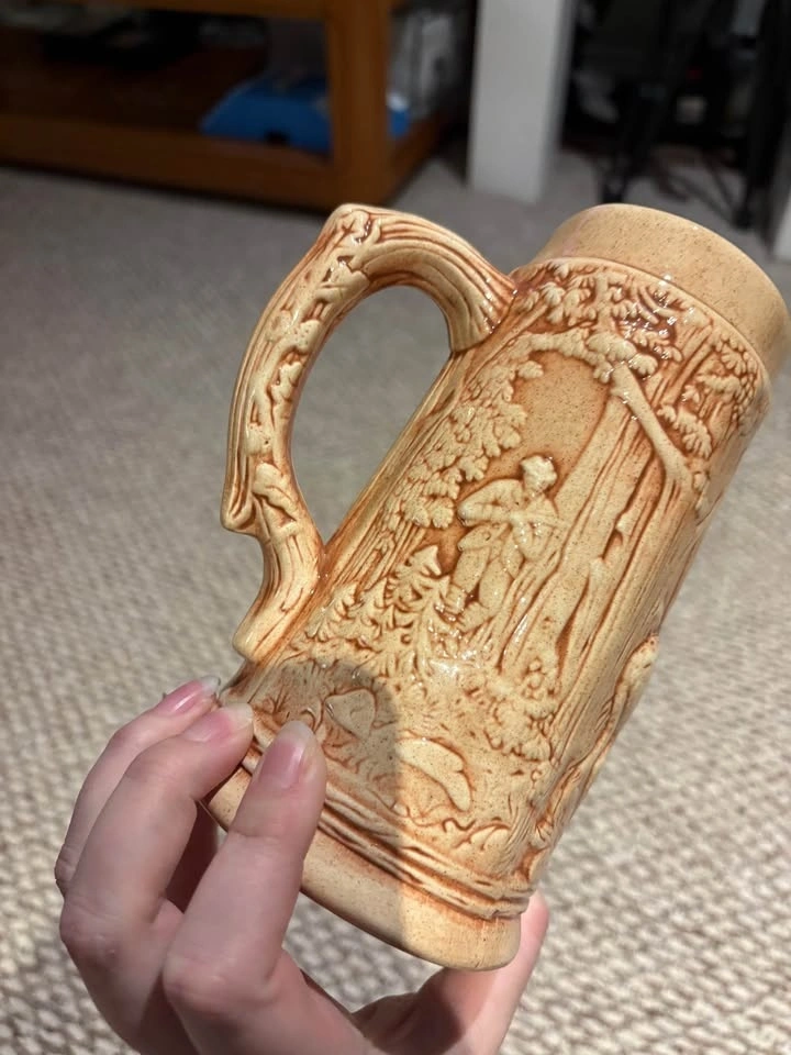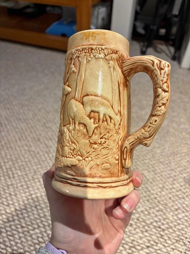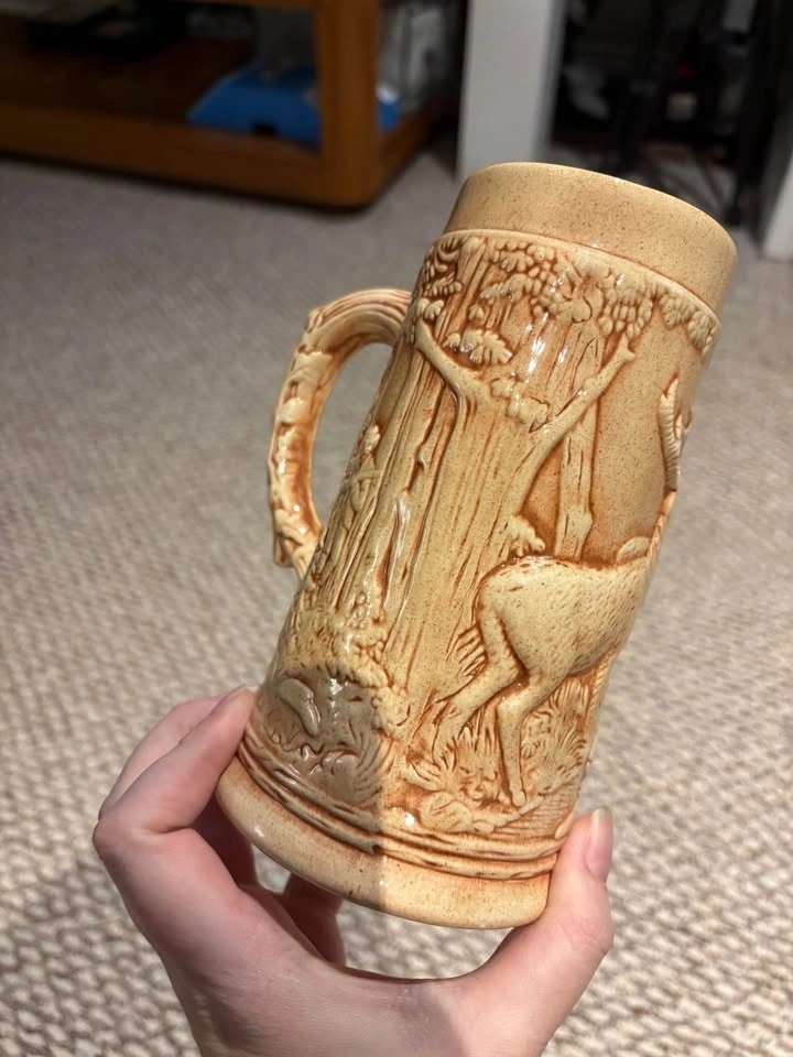 Buy & SellHand made Hunting Pottery MugHand made Hunting Pottery Mug$5Great condition handmade pottery mug. Initials JJR on bottom. Please see my other listings to make a bundle.WHERE TO MEETHomeView MapSELLERVictoria LambertWelland25520 reviews0 chats·0 favorites·0 viewsSEND CHAT TO SELLERHi Victoria Lambert! I’m interested in your listing.Hi Victoria Lambert! I’m interested in your listing.Get the Karrot app to chatSign In to chat