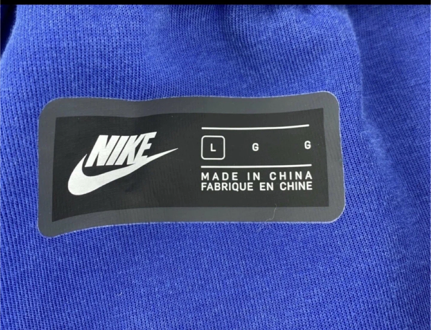 These are Nike men's fleece shorts in a blue color. They're a size large and made in China. Includes original tags.