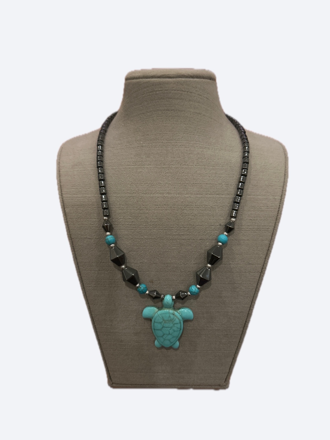 Turtle Pendant Necklace - Turquoise & Black Beads