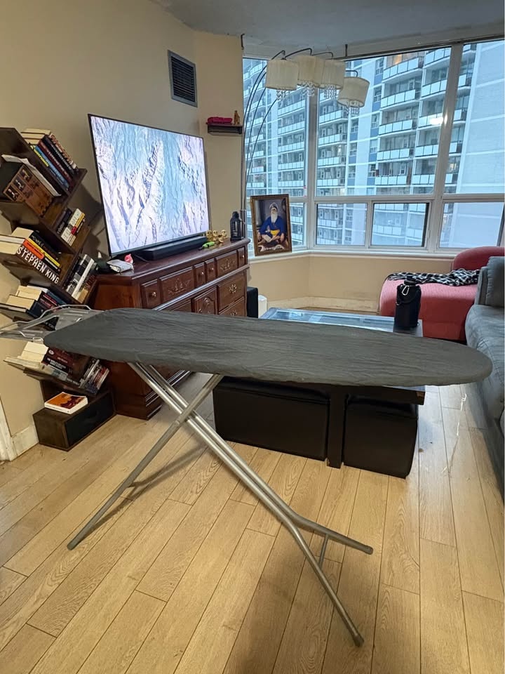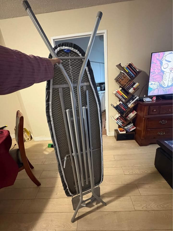 This sturdy ironing board stands steady and is easy to fold and tuck away when you’re done. You can place the iron on the handy shelf on the side, so it doesn’t topple. Pickup in downtown near Wellesley subway station