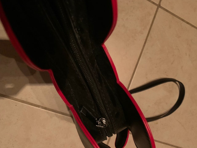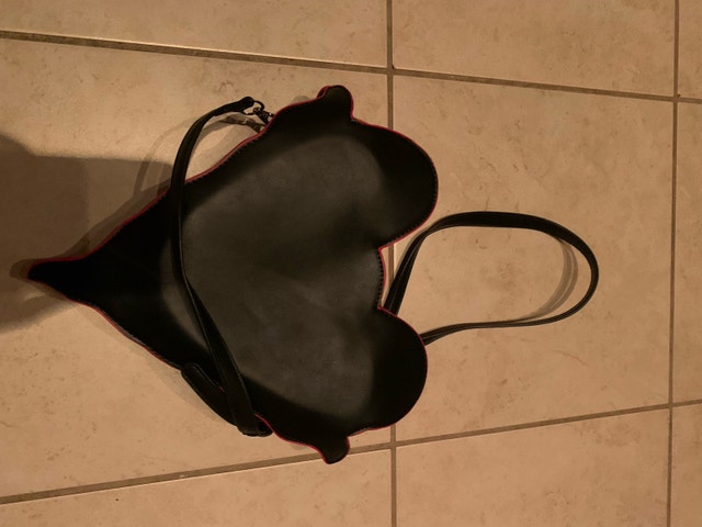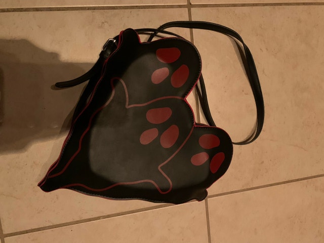 This Spirit Halloween purse is the perfect spooky accessory, featuring a unique ghost design with red accents and a convenient shoulder strap. Banana for scale lol