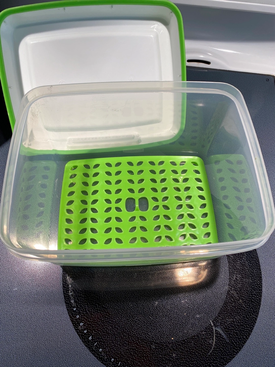 Keep your fruits and veggies fresher for longer with this Rubbermaid FreshWorks container! It includes the container, lid, and green CrispTray to promote proper airflow. It's a great way to reduce food waste and save money on groceries