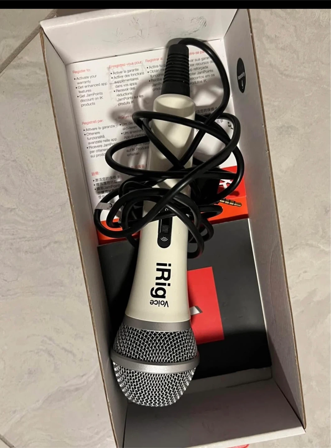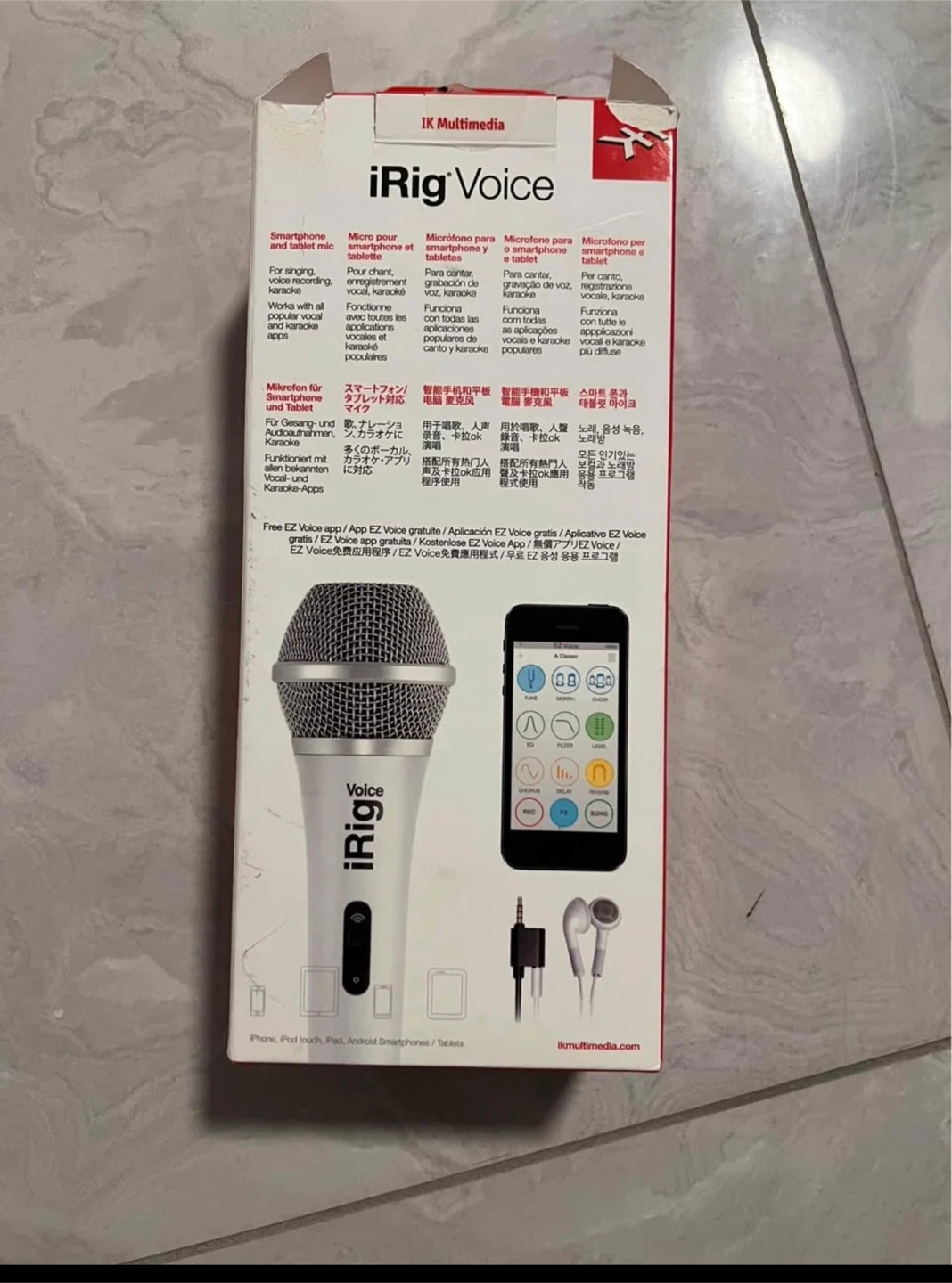 10Selling an iRig Voice microphone for smartphones and tablets! It's in great condition and comes with the original box. Perfect for karaoke or recording on the go. Works with various apps like EZ Voice, Smule, and more!